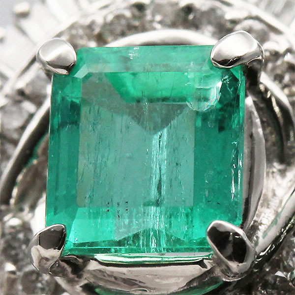 ひときわ目を惹く鮮やかなエメラルドが印象的なプラチナリング。