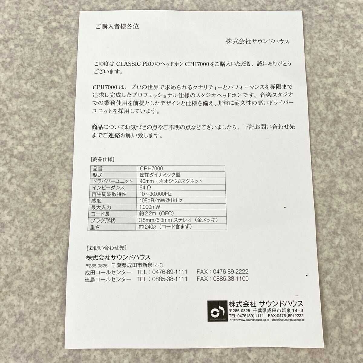サウンドハウスのモニターヘッドホンCLASSIC PRO CPH7000 です。