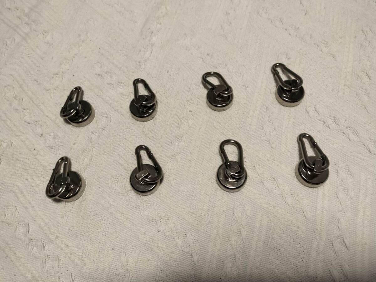 【8個-直径25mm】カラビナ付き磁石 超強力磁石 マグネットフック ネオジム磁石 ステンレス製 防錆