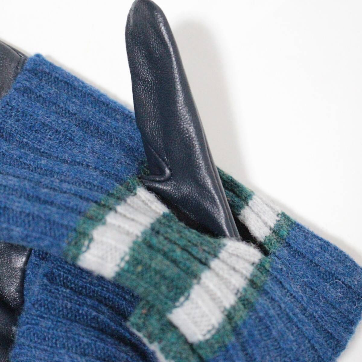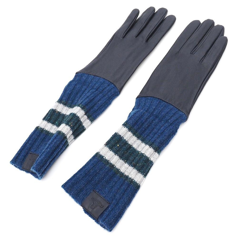 | 未使用 ヴィヴィアンウエストウッド 2WAY タッチパネル対応 レザーニットレイヤード 手袋 20cm 紺 K5800 |