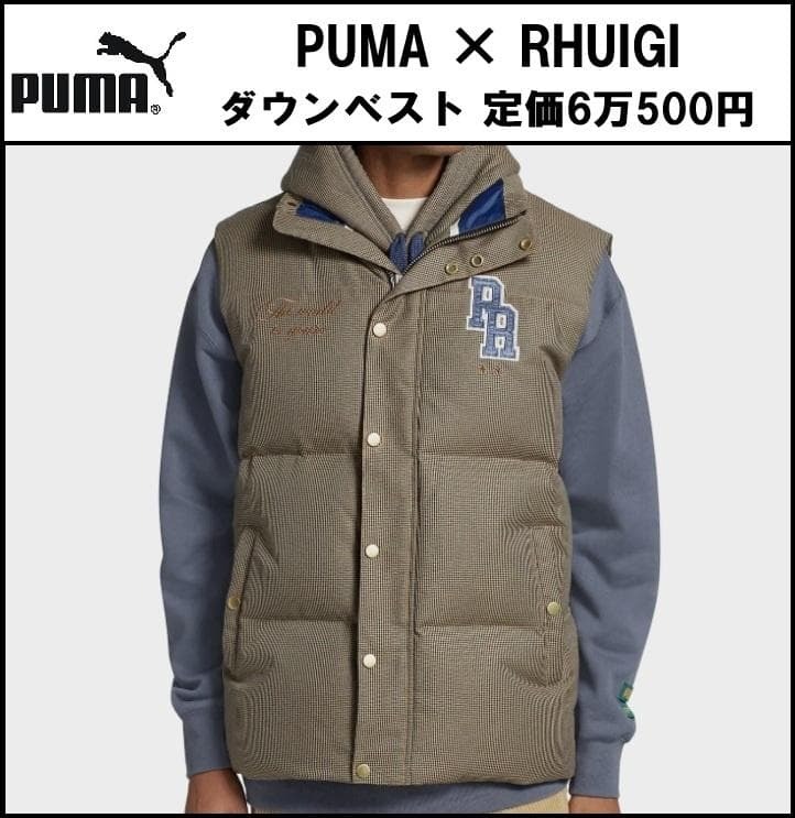 RHUIGIのブランドロゴ入りのウーブンラベルがついており、コラボレーションならではの特別感のあるデザインです。