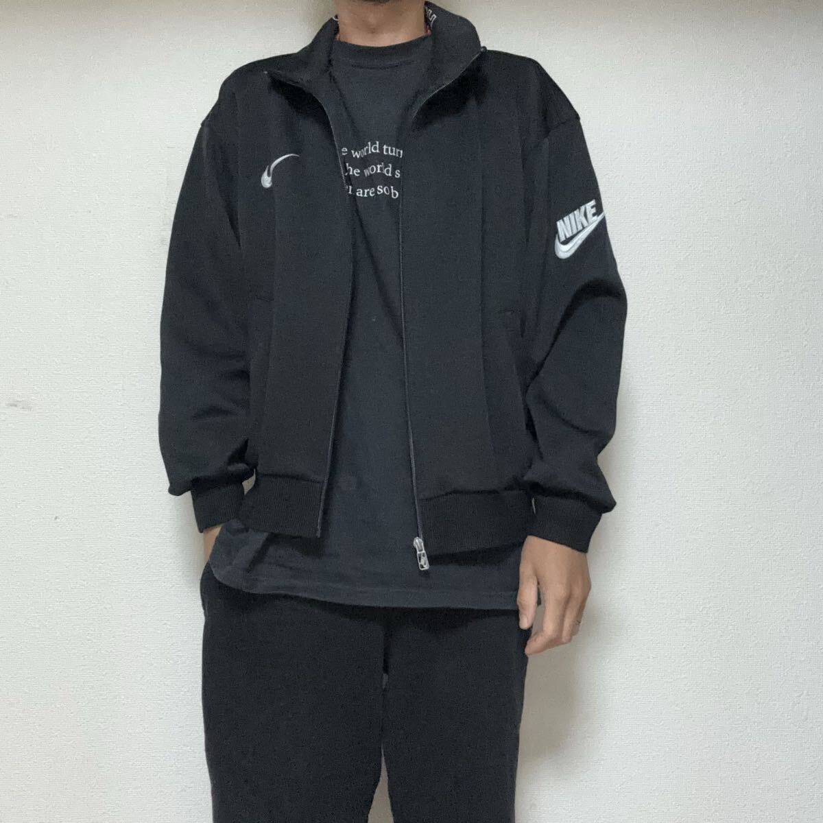 ブラックに映えるスウッシュが三点も刺繍されたクールな一枚です。