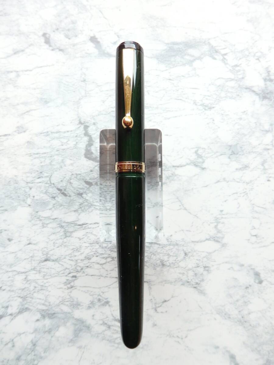 ◆【きれいな良品】【送料410円~】仙台 JSU 大橋堂 濃緑漆塗り万年筆 ペン先:大型14K585 F-M