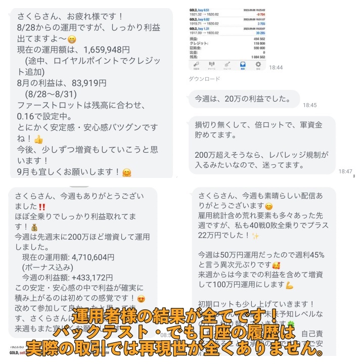 まずは参加して裁量EA「真・夜桜」のリアルな実績を見てください↓