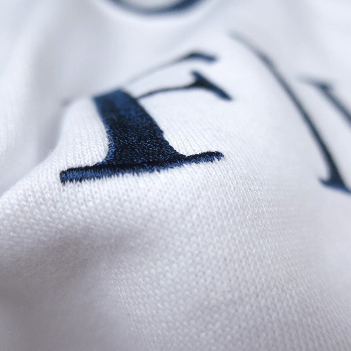 ■フロントにサガラ刺繍で表現した立体的なロゴ刺繍を施し、シンプルながらもデザイン性の高い一枚になっています。