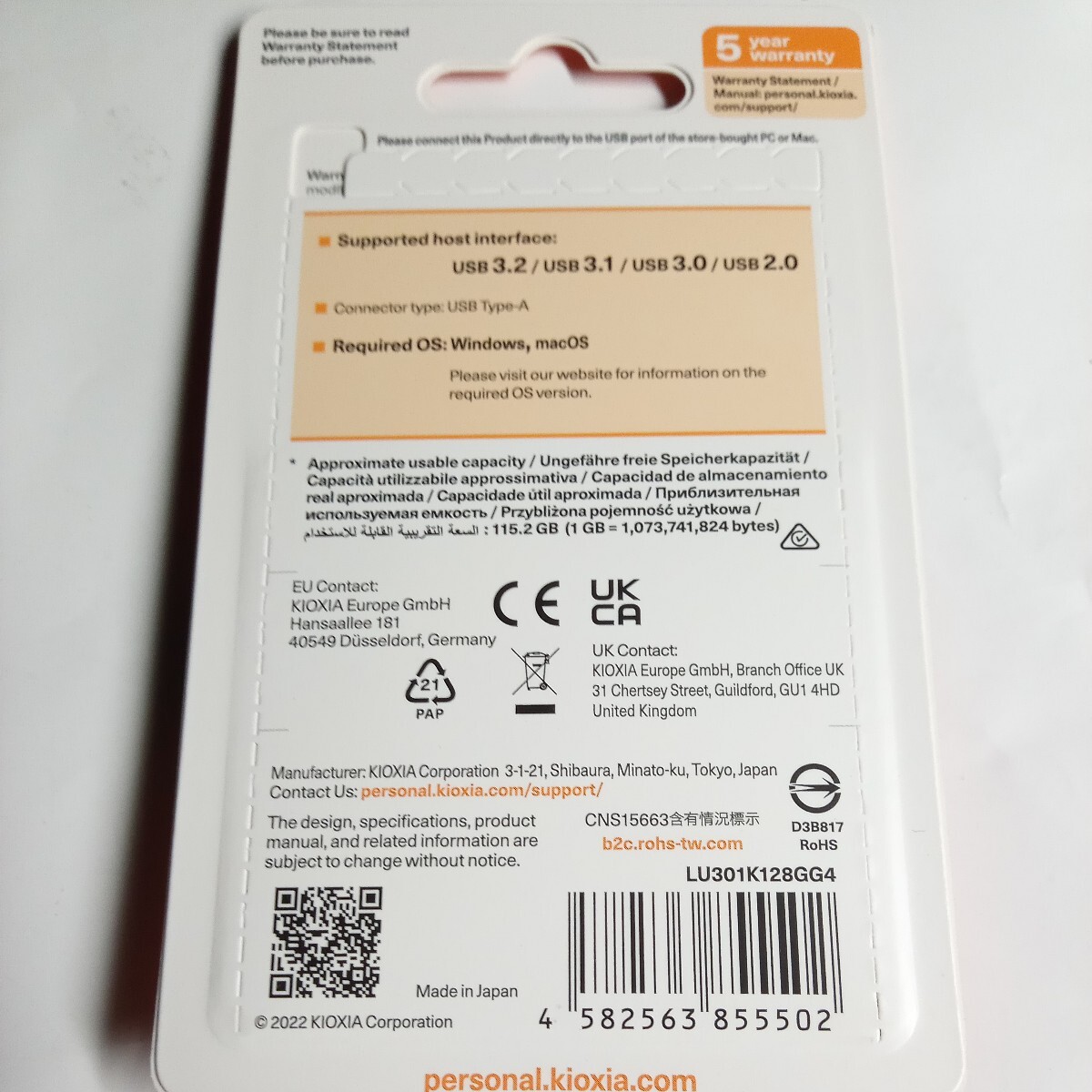 ◆旧東芝・キオクシアUSBメモリ高速128GBブラック