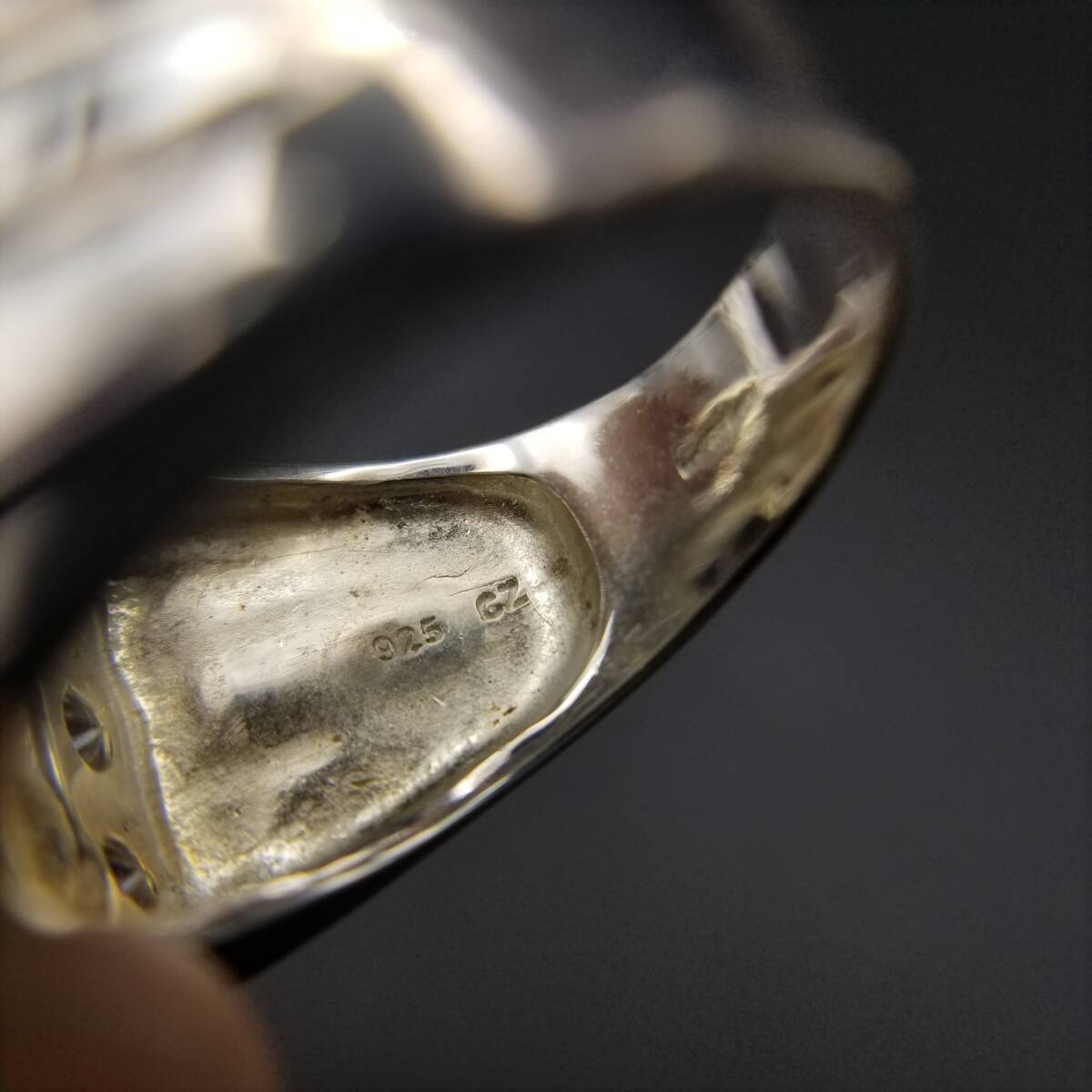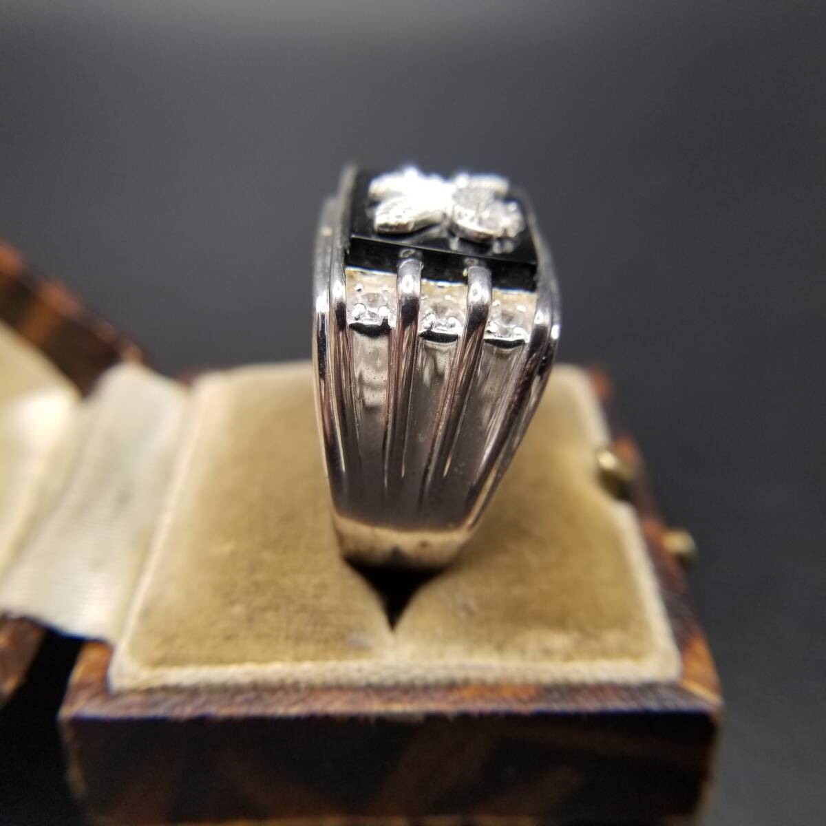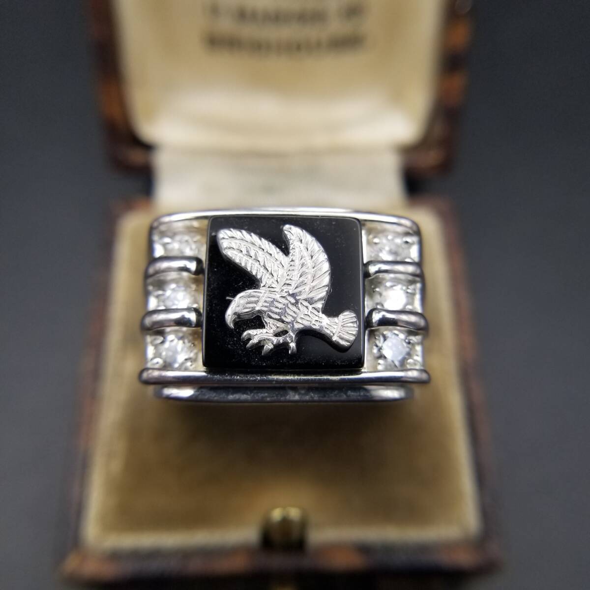 St George イーグル紋章 キュービックジルコニア 煌めき ヴィンテージ リング 925 シルバー 銀 指輪 大ぶり 重厚感 英国 Birmingham Convention マーク R16-V