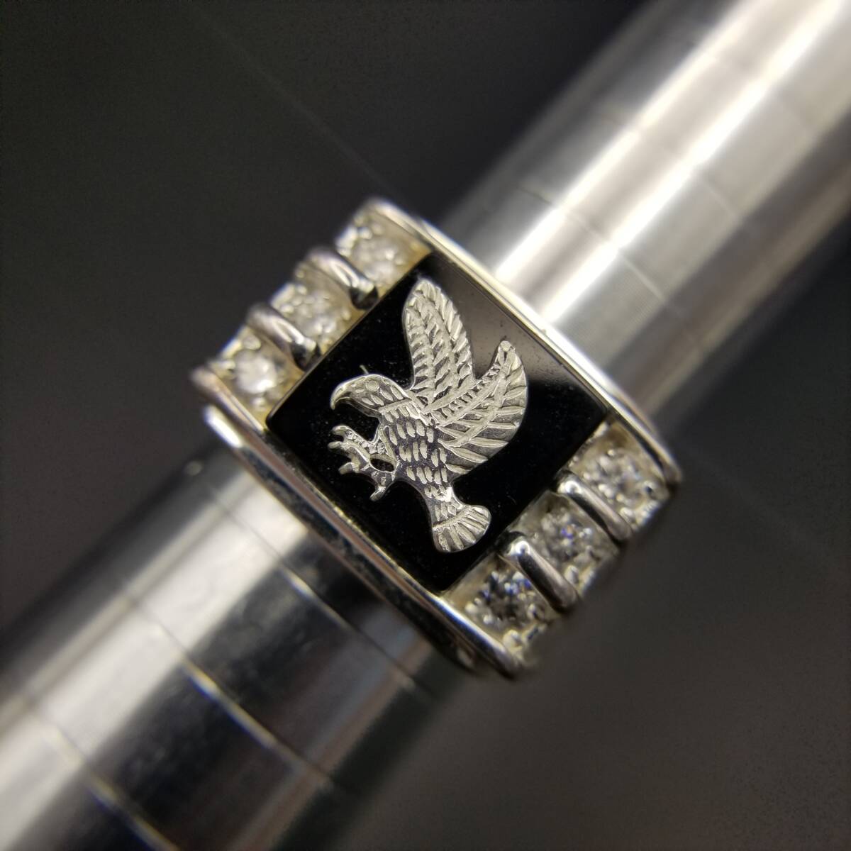 St George イーグル紋章 CZ 煌めき ヴィンテージ リング 925 シルバー 銀 指輪 大ぶり 重厚感 Silver Convention マーク R16-V