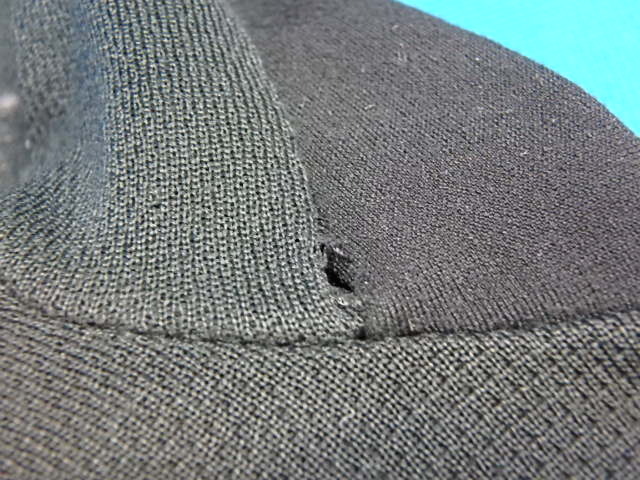 ・縫い目にほつれがあります。生地が薄くなったり傷みがあります。ゴロマークが割れています。内側に毛玉があります。