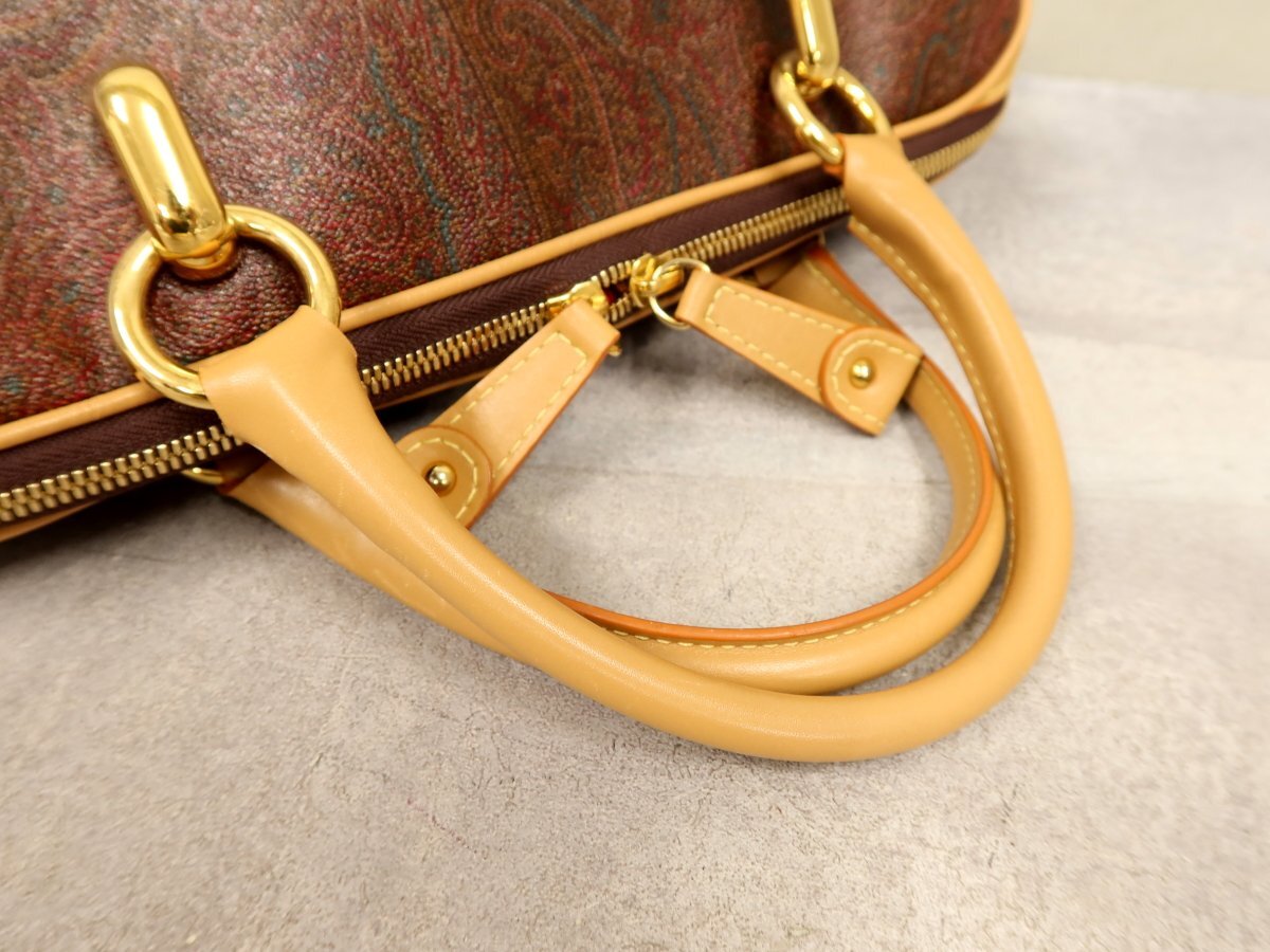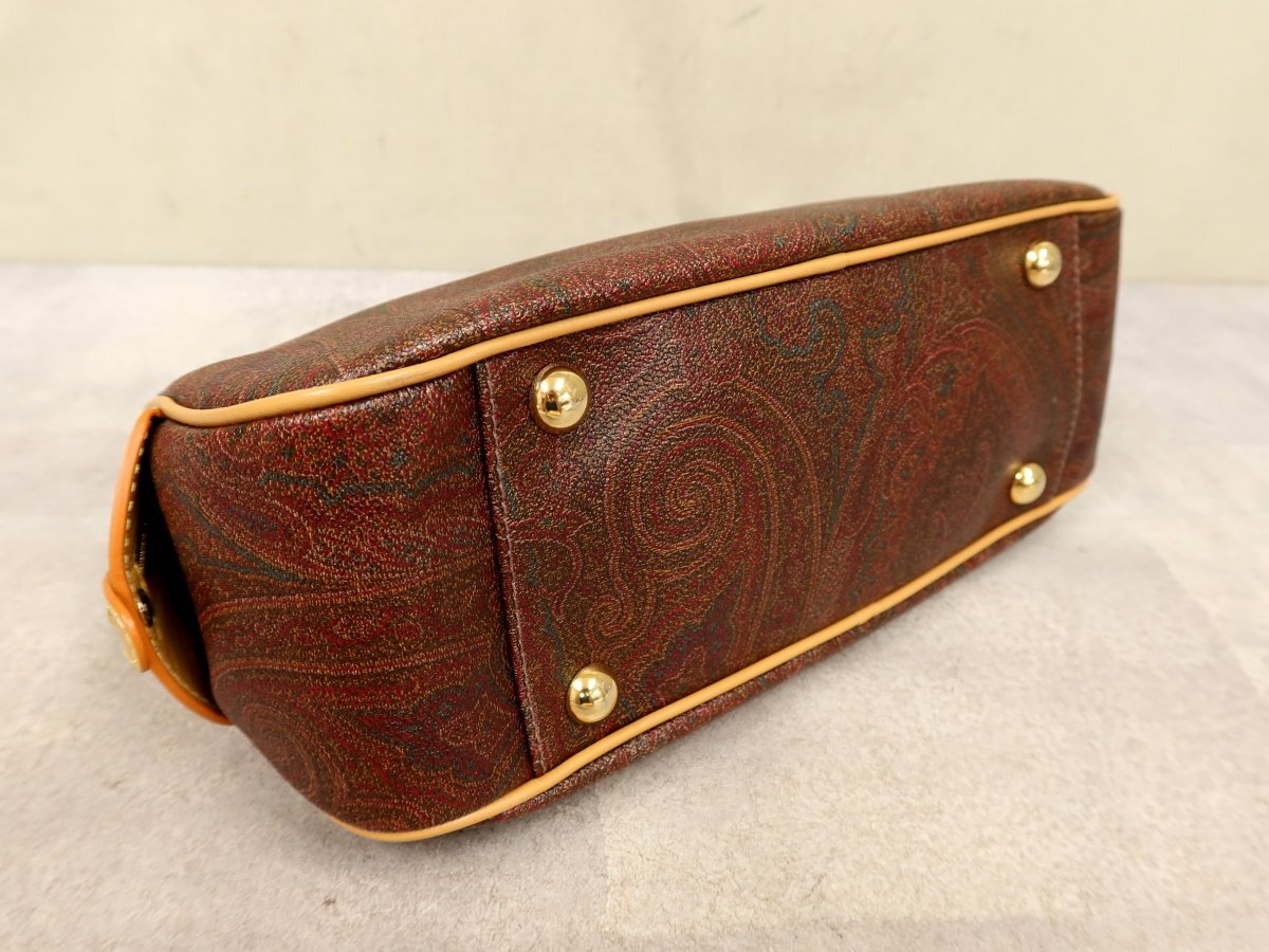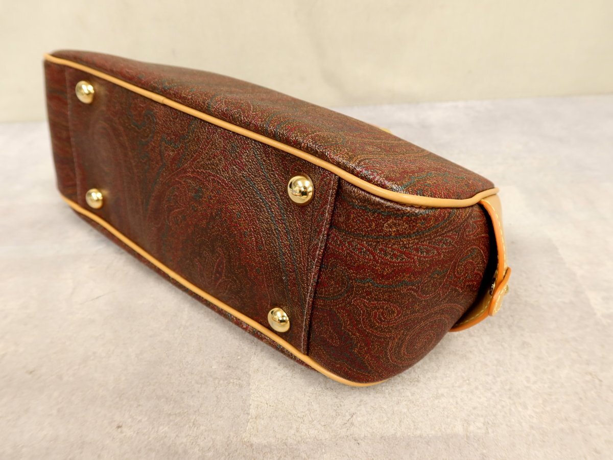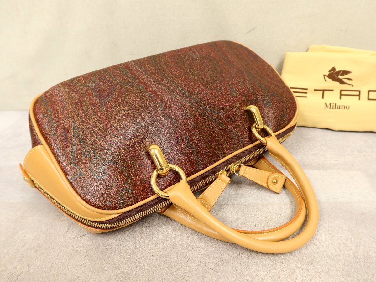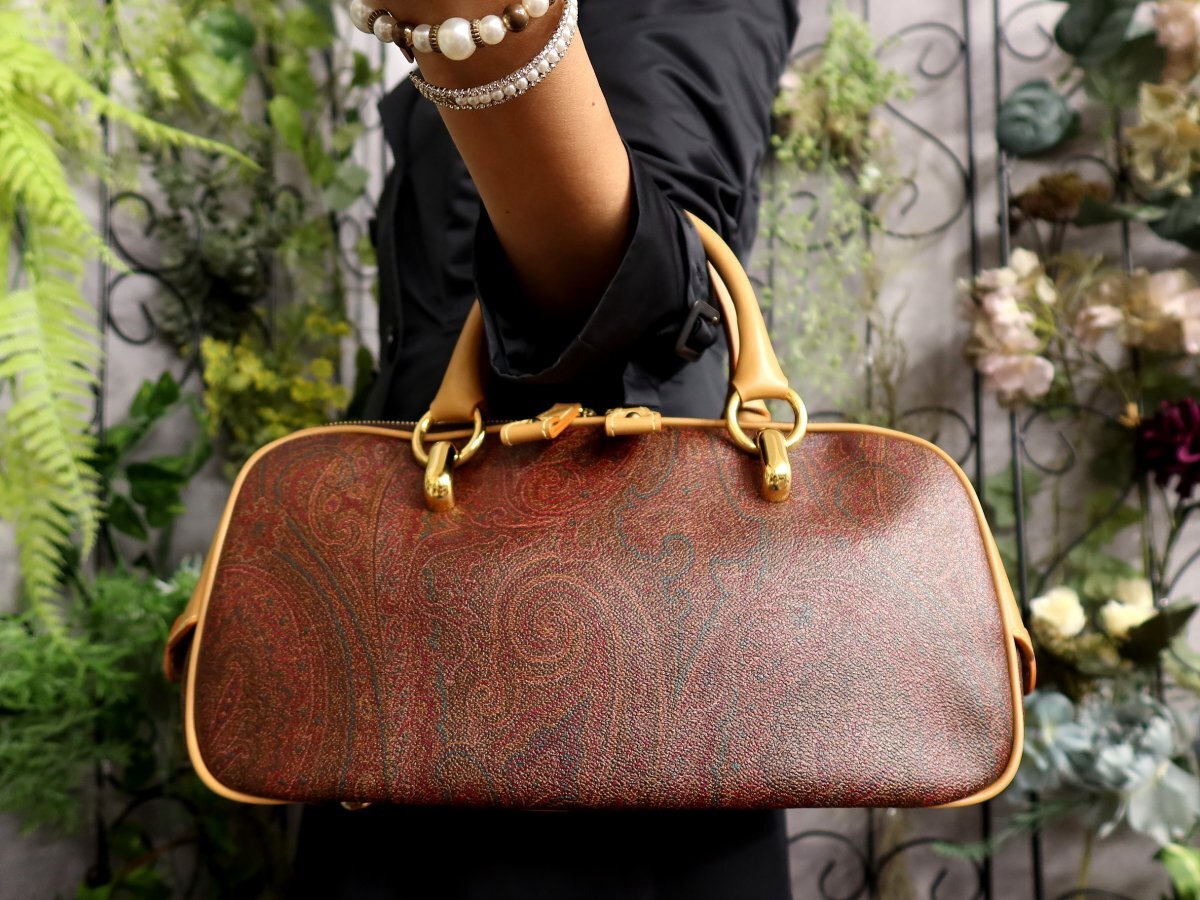 ●超美品●新品同様●ETRO エトロ●ペイズリー柄●PVC カーフ レザー 本革●ハンド バッグ●ブラウン系●ゴールド金具●腕掛け●Js61803