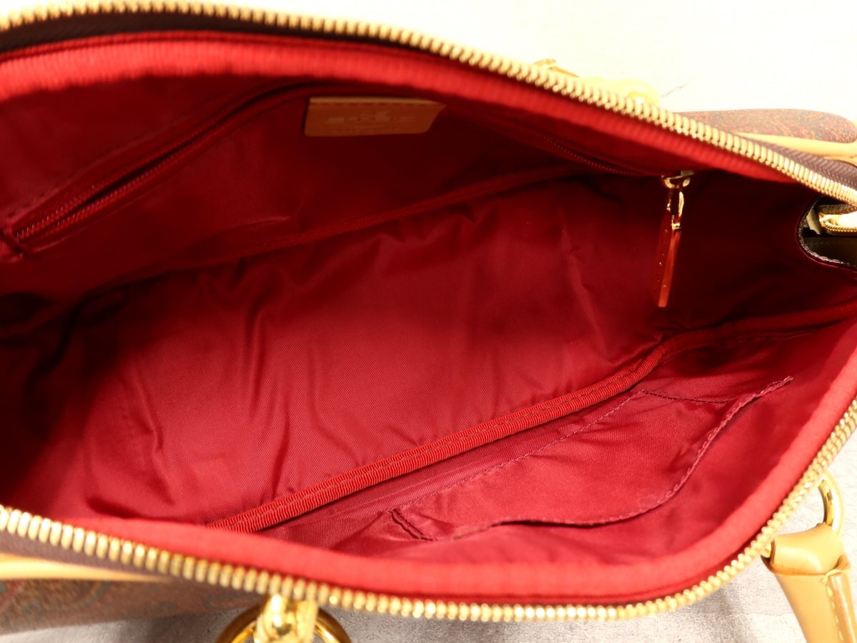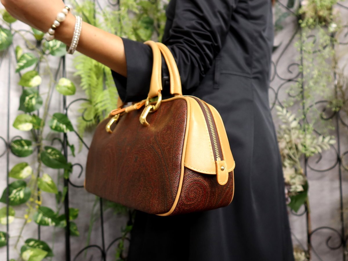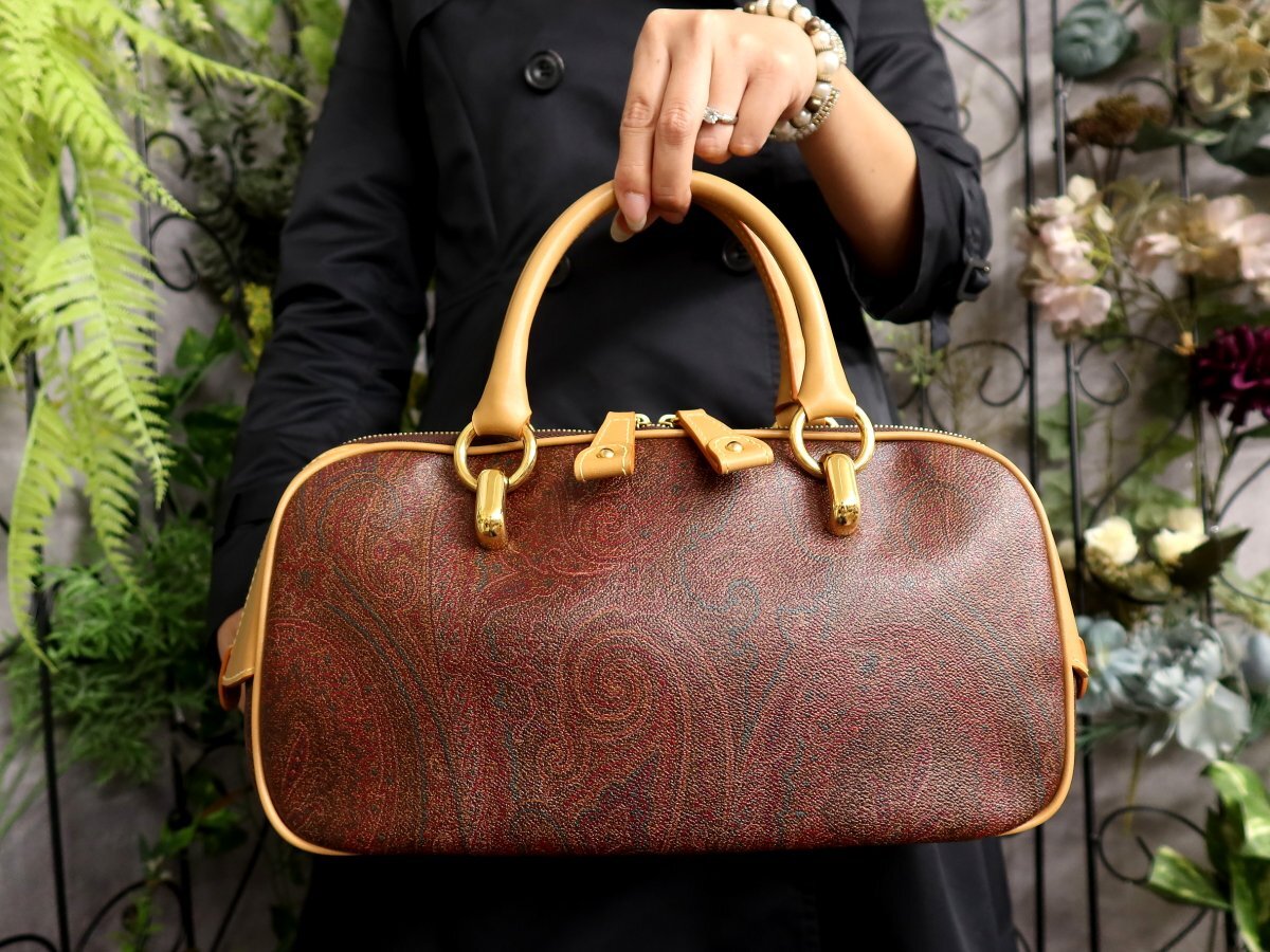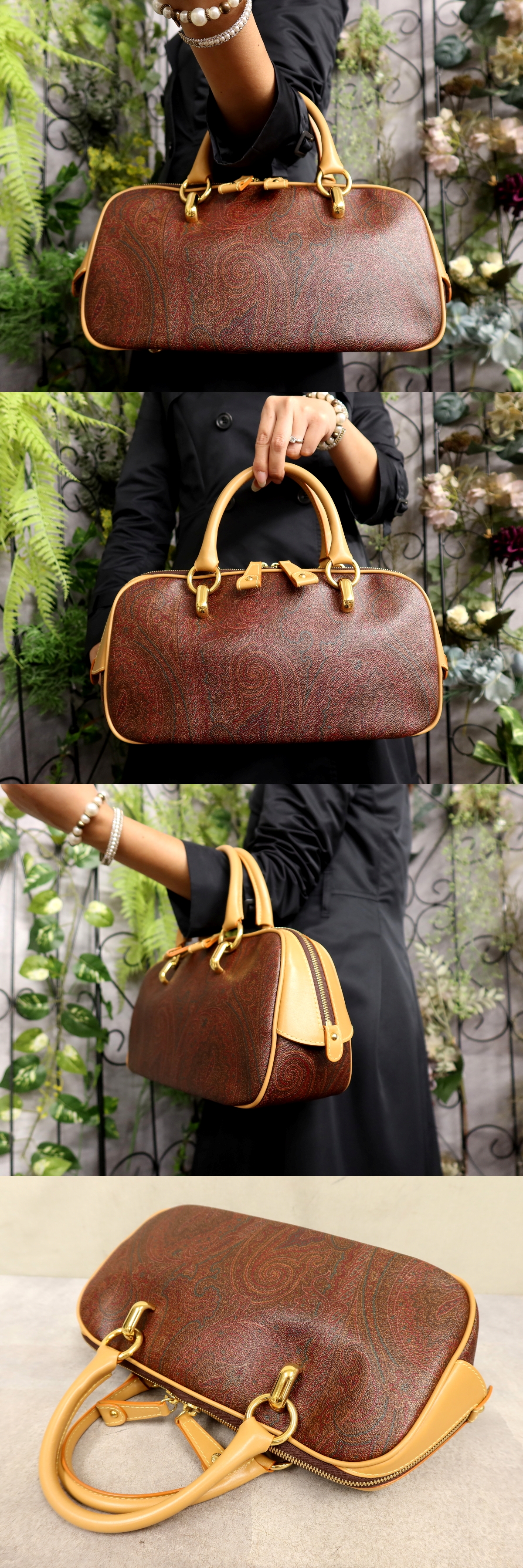 ●超美品●新品同様●ETRO エトロ●ペイズリー柄●PVC カーフ レザー 本革●ハンド バッグ●ブラウン系●ゴールド金具●腕掛け●Js61803
