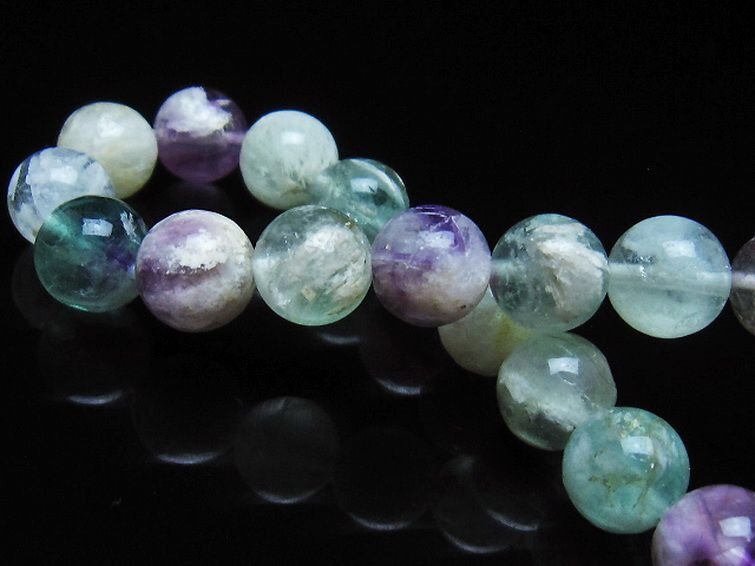 | ■商品名: エンジェルフェザー フローライト ブレスレット ■商品ID: T53-4881 ■商品重量:約 25.8g ■商品サイズ:内周約:155mm(±5mm)粒直径約:9mm(±0.5mm) 【フローライト(蛍石)】 フローライトは鮮やかなカラーのグラデーションが美しい天然石で、トルマリンに次ぐカラーバリエーションを持つとされています。 フローライトの中に白い羽のような内包物が入ったものは「エンジェルフェザーフローライト」と呼ばれ、普通のフローライトに比べて癒しの効果に特化しているとされています。 白い内包物の正体は未だに解明されておらず、アラゴナイトの一種やゼオライト、クォーツなど諸説あります。 フローライトはラテン語で流れるという意味の「fluere」が由来となっており、その言葉どおり滞っていた気の流れを整えて心身と環境のバランスを調和させるエネルギーを持つとされています。 また「天才の石」とも呼ばれ、思考力と記憶力、集中力を高めるとされており、クリエイティブな能力を引き出すといわれています。 緑は癒し、紫は浄化、青は知性、黄色は希望など、色合いによって持つ意味や効果に違いがあるともされていますので、期待する効果によってフローライトを選ぶのもおすすめです。 ⇒ フローライトをもっと詳しく ◆ワンポイント情報 フローライトは硬度が低く、一方向に割れやすい劈開性を持つため衝撃を与えないようにしてください。 また、紫外線や水分も褪色や劣化の原因となりますので保管の際も注意が必要です。 |