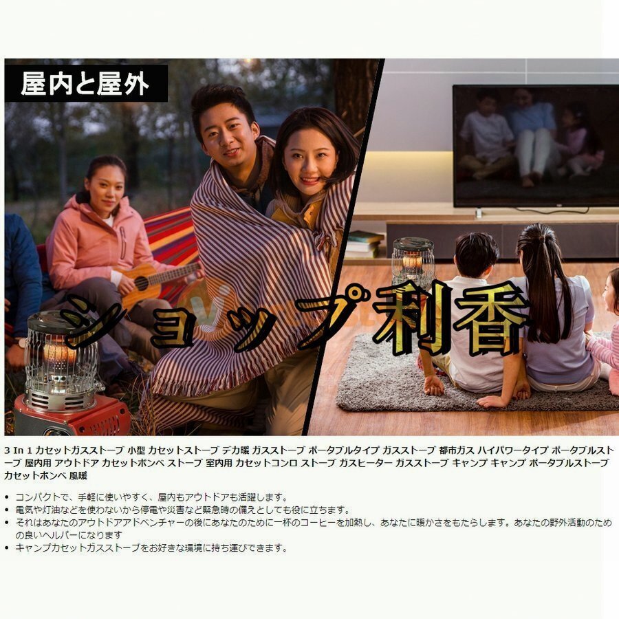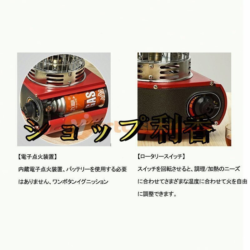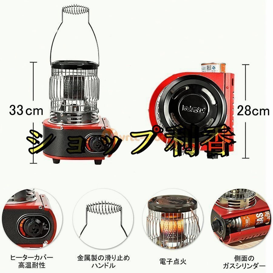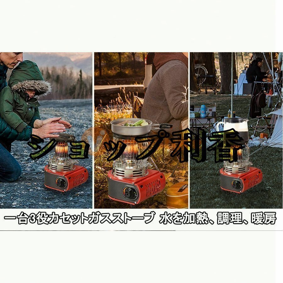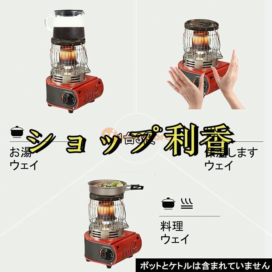 商品説明 商品説明 【製品パラメータ】サイズ:33x28x28cm重量:2.2kg連続燃焼時間:4?5時間 (1pcs)燃料:ガスボンベ(液化ブタン/100gと230gサイズ)最大熱量:1.7kw【商品内容】1 * カセットガスストーブ1 * 取扱説明書(ガスボンベは付属しておりません)【一台3役】水を加熱