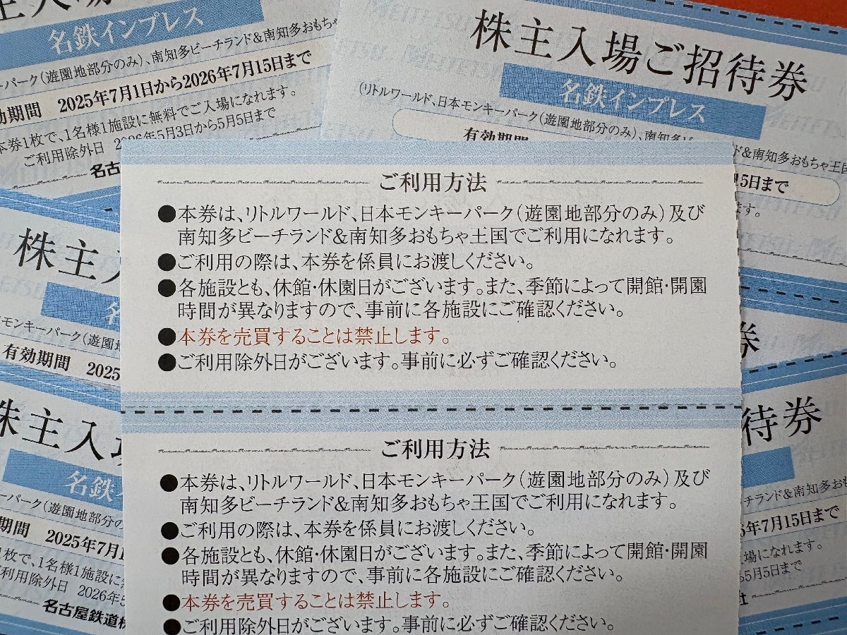 1枚~☆南知多ビーチランド&おもちゃ王国・日本モンキーパーク・リトルワールド入場券・招待券☆名鉄株主優待券♪