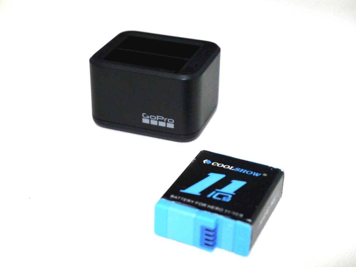 給電用穴あきサイドカバー、社外品予備バッテリーと