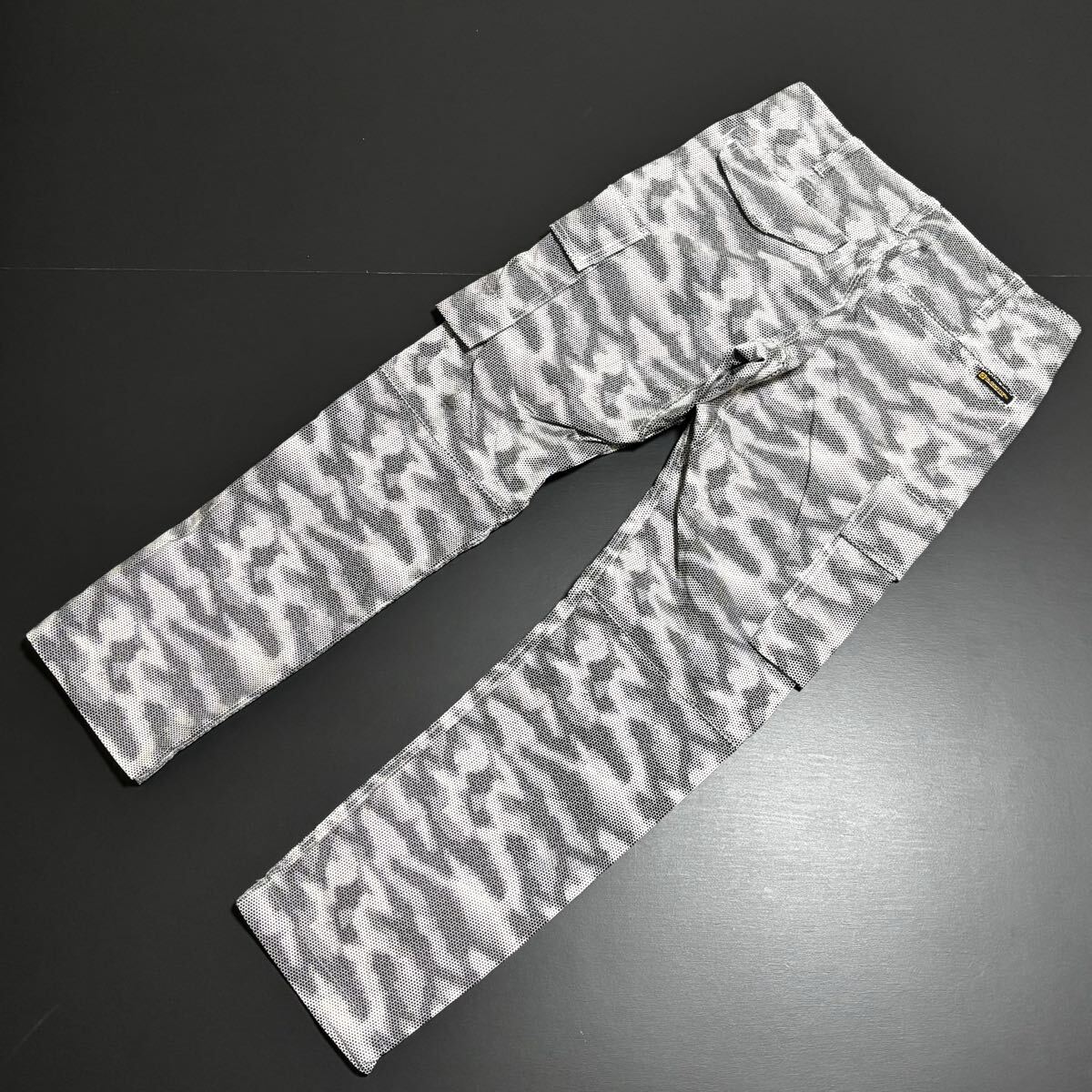 頑丈なリップストップ生地に、個性を生み出すドット柄プリントと心地よいストレッチ性をプラス。サイドのカーゴポケットは、底フラシ仕様にすることでモノあたりがしにくく、膝が曲げやすい。また、長財布もすっぽり収まる抜群の収納性もプラス。穿くたびに“進化”を体感する“進化系”ミリタリーカーゴパンツ。