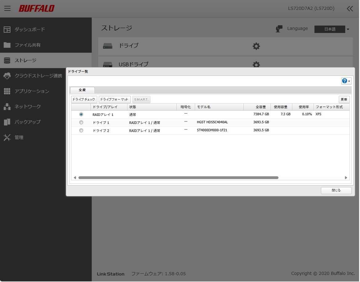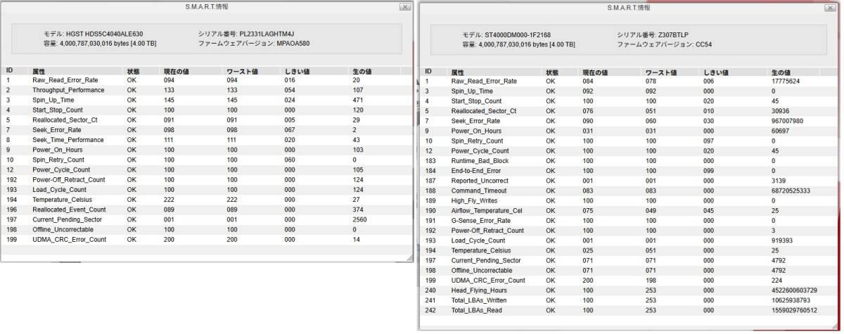 HDDの状態はS.M.A.R.T情報でOKを確認してあります