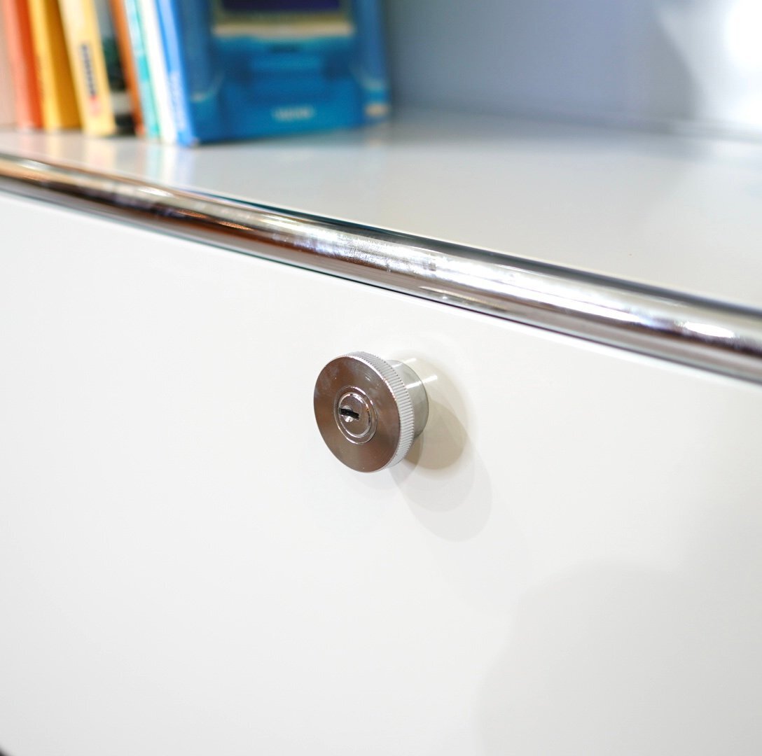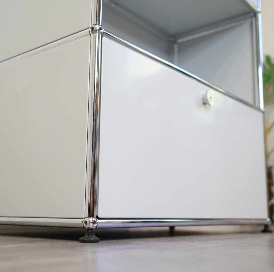 USMハラーの最大の魅力は何といっても無限の組み合わせが可能なモジュール構造でしょう。スチールパネルとクロムメッキのチューブが織りなすシンプルな構造美は、置くだけでいつもの部屋を洗練された特別な部屋に変えてくれます。