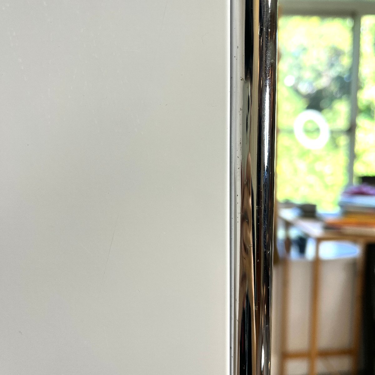 ミニマルでありながらもどこか温かみを感じるデザインは時代を越えても色あせることはないでしょう。クロムフレームの輝きが空間を引き締め、淡いトーンのパネルが清潔感と品格を与えてくれます。