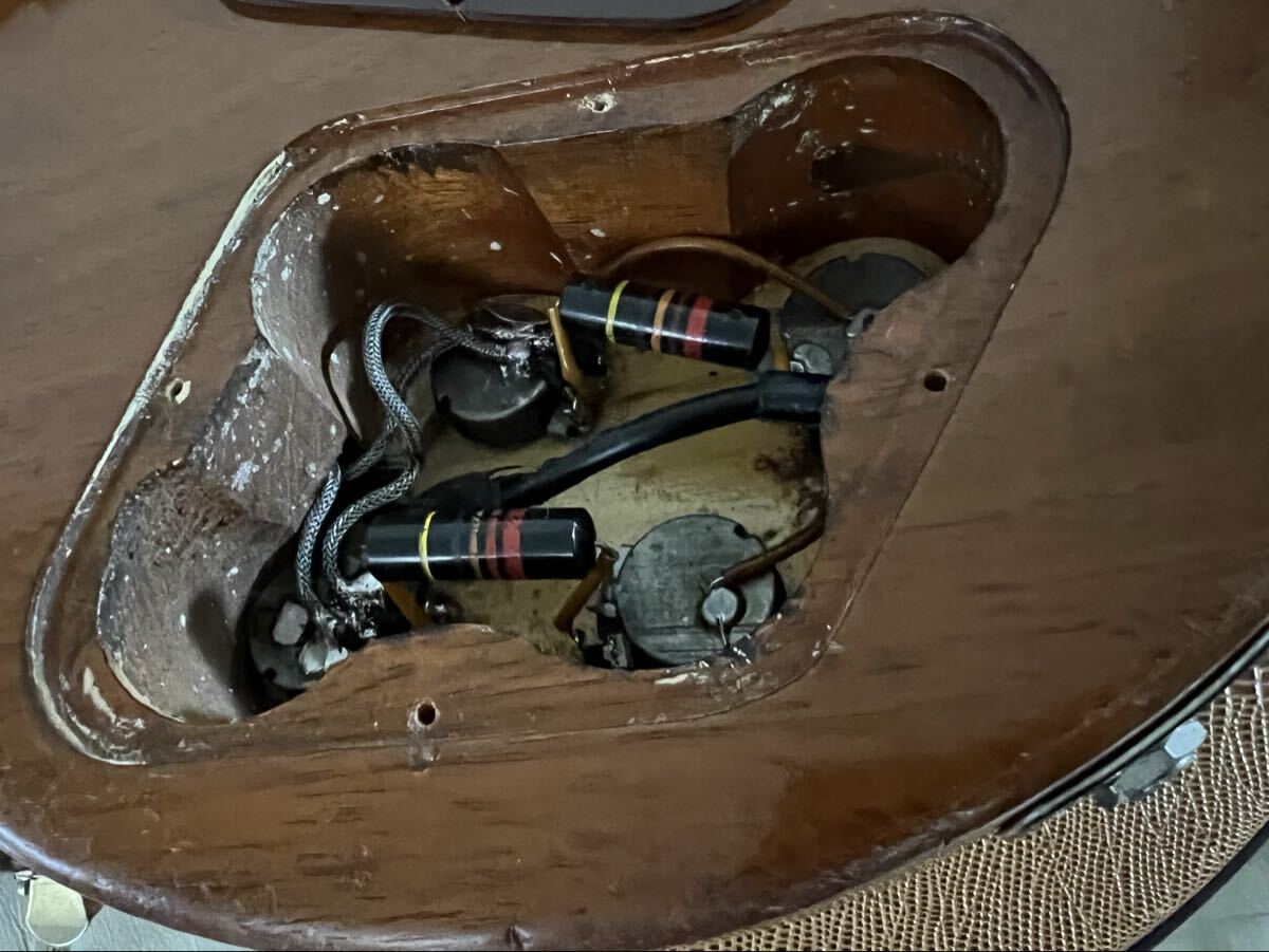| 重量は約3.95Kg になります。 1955年製 Gibson Les Paul Standard をベースにPAF x 2へ ModしたGold Topになります。1957年Gold Topのブラックパーツ仕様を イメージしていますね。このギターがModに適しているのは、オリジナルが ビグスビー仕様で、ネック差し込み角度が56年以降と極似ているとのことです。 1955年オリジナル部分:木部、ペイント、Kluson Pegs, トラスロッドカバー ポット含むハーネス(キャパシターのみ1959年のバンブルビーx2) バックプレートカバーx2 スイッチティップ、ストラップピン。 '50S Gibson パーツ:PAF x 2, ピックアップリング、ABR-1 スタッズアンカー& ロングスタッズ、ノブx4。 トム・マーフィー:ピックガード、ジャック・プレート、ストップテール・ピース (DMC or Crazy Parts?かも知れないフェザーウェートのストップテールピース付属、 音は個人的にはこちらが好みでした、どうもこれが10万近くする様です) ハードケースはLiftonが米国向けに販売したレアーケース、ブラウンケースより安全です。 我々仲間のあいだではビキニと呼ばれていました、 ビグスビー跡が日焼けのビキニ跡を連想しますので、いずれ同色化するかは分かりませんが。 1959年Les Paul Standardが何千万円から億なのでしょうか?扱い怖くて自宅スタジオでも ヒヤヒヤですね、このModは使えます!! また、まだ諸々試せます。 その他は、自分がいつも信頼している方に、リフレット、リナット などを施して頂き、楽器として成立する施工をして頂いて居ります。 レコーディングで歴戦して来ました個体です。 ヴィンテージが高騰する中とても貴重な一台だと思います。 リタイヤに向けての楽器整理で出品致します。 ■注意事項&入札条件■ 当方ビジネス目的で出品しておりません。不要になってしまったアイテムを 出品させて頂いております。写真は拡大して確認下さいませ、その後に ご不明な点がありましたら、ご入札前に質問欄からお問い合わせ下さいませ。 出来る限りの範囲で回答させて頂きますが、出来ない場合はご了承お願い致します。 アイテムのほとんどに早期終了をしておりますが、質問欄からの 開始価格を下げるなどの価格交渉はご遠慮お願い申し上げます。 また各アイテムの問題点は解っている限り明記いたします。 例えばトラスロッドが使用出来ないネックは必ず明記します。 傷、劣化を含め個人の主観が異なると思いますので、写真にて ご確認して頂き、写真が不確実と思われる方はご入札をご遠慮下さいませ。 あくまでも素人の写真で、故意に見えにくくとか、わかりにくくする事はもうとう 御座いません。 オークションで騙されると思われる方の入札は絶対にお断り致しますので ご理解の程宜しくお願い致します。 本業がありますので、商品引き渡し後のサポート、音が出ない以外の、 返品交換、返金は出来ませんので御了承下さいませ。 お互い御礼のメッセージを出来る様な、気持ちの良いオークションにしたいと、 心の底から望んでやって居りますので、ご理解宜しくお願い申し上げます。 ※お支払い方法について※ お支払いはYahooかんたん決済のみになります。 ※発送方法 手渡し希望ですが、ご要望が有れば発送致します。 以上が入札の条件ですのでくれぐれも宜しくお願い致します。 落札後24時間以内にご連絡を頂けますと、皆様の落札アイテムを 同時に早急にお送りする事の可能性が高くなりますのでご理解の もとご協力お願い申し上げます。入金後の当日翌日の発送に努めていますが、 落札者様からの連絡、入金が遅れる場合全体的な発送が遅れてしまう事が ありますのでご承知お願い申し上げます。 それでは、お探しのアイテムが見つかる様祈っております。 |
