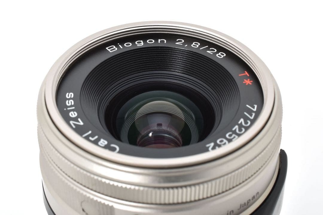 CONTAX Carl Zeiss Biogon 28mm F2.8は、レンジファインダーカメラCONTAX Gシリーズ用の広角レンズです。Biogonの名が示す通り、歪曲収差が少なく、画面全体でシャープな描写を実現します。コンパクトなサイズで携帯性に優れ、スナップ撮影や風景撮影に最適です。Gシリーズ特有のAF機構により、素早いピント合わせが可能です。フィルムカメラでの使用はもちろん、マウントアダプターを介してミラーレスカメラでもその描写力を楽しめます。