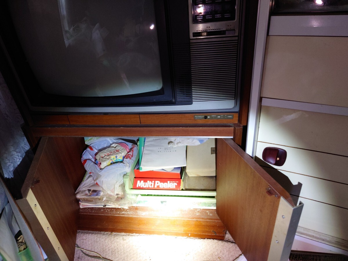 長期間保管の汚れあります。テレビ下の荷物は購入者の方が持って行く際に、置いて行って構いません。