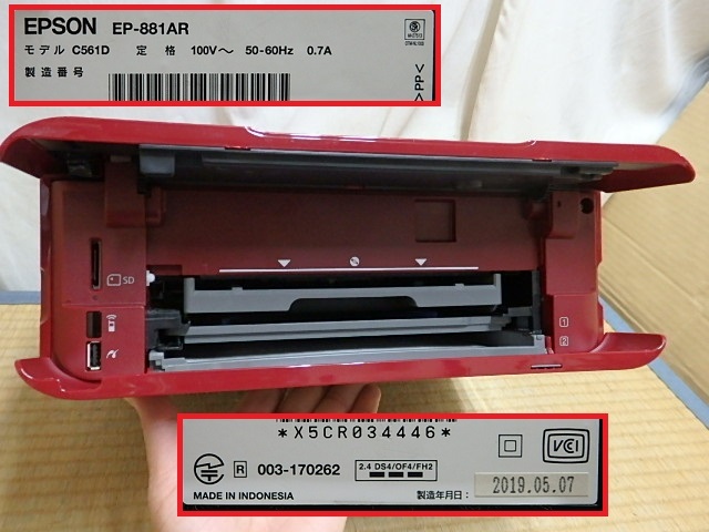 !□A4 プリンター EPSON EP-881AR 2019年製 エプソン レッド 電通有り 初期化済み