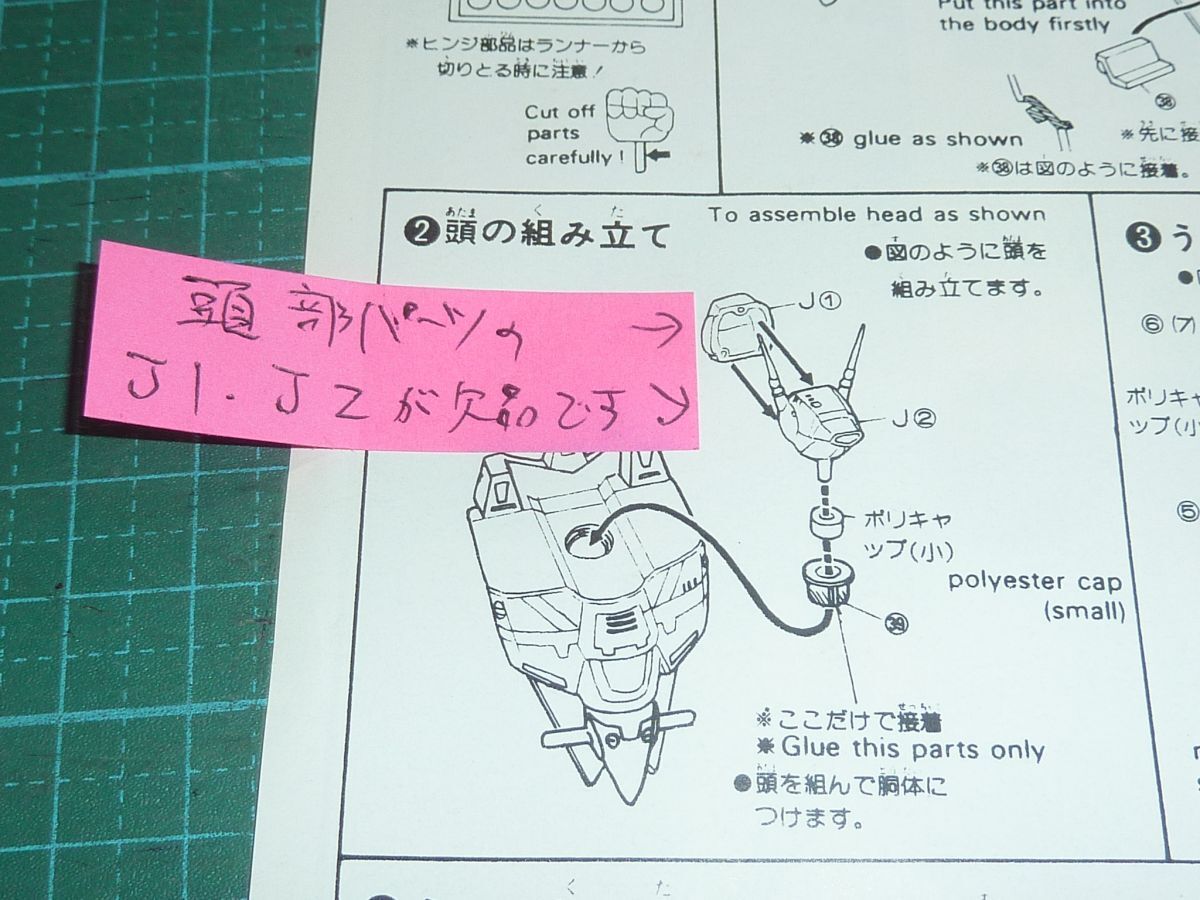頭部のJ1,J2のパーツ2点が欠品しております。