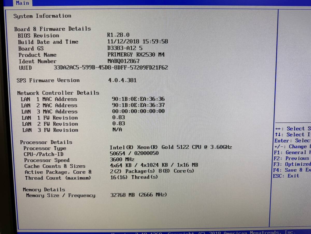Processor : 2x Gold 5122 4Core 3.60GHz
