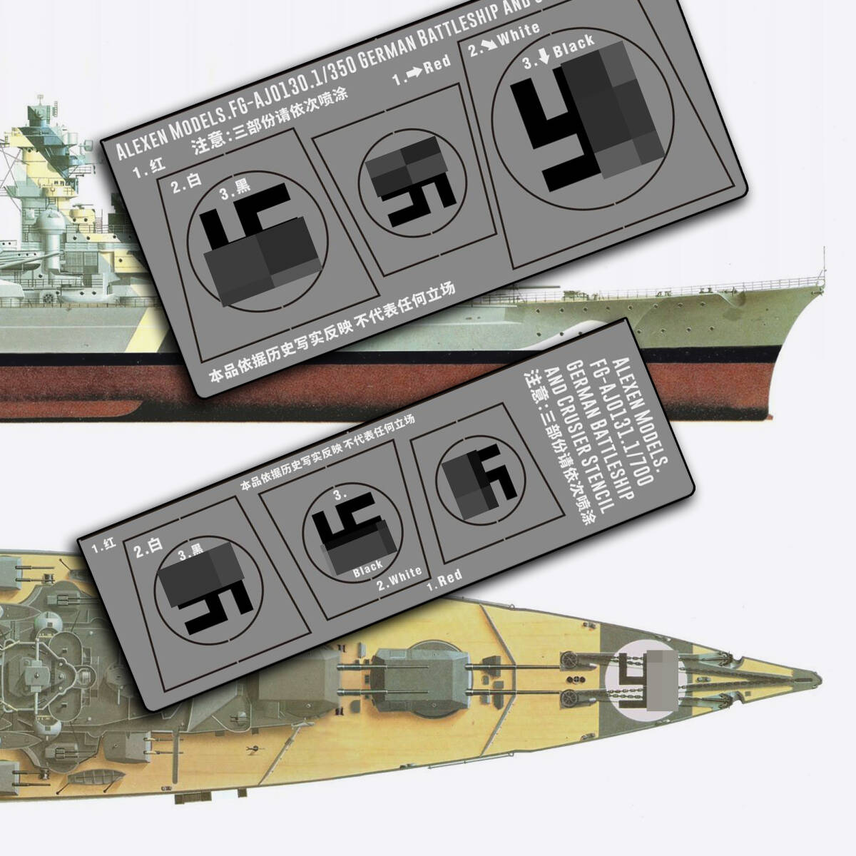 第二次大戦中のドイツ海軍戦艦等の前後甲板に大きく施された対空標識の塗装テンプレートです。
