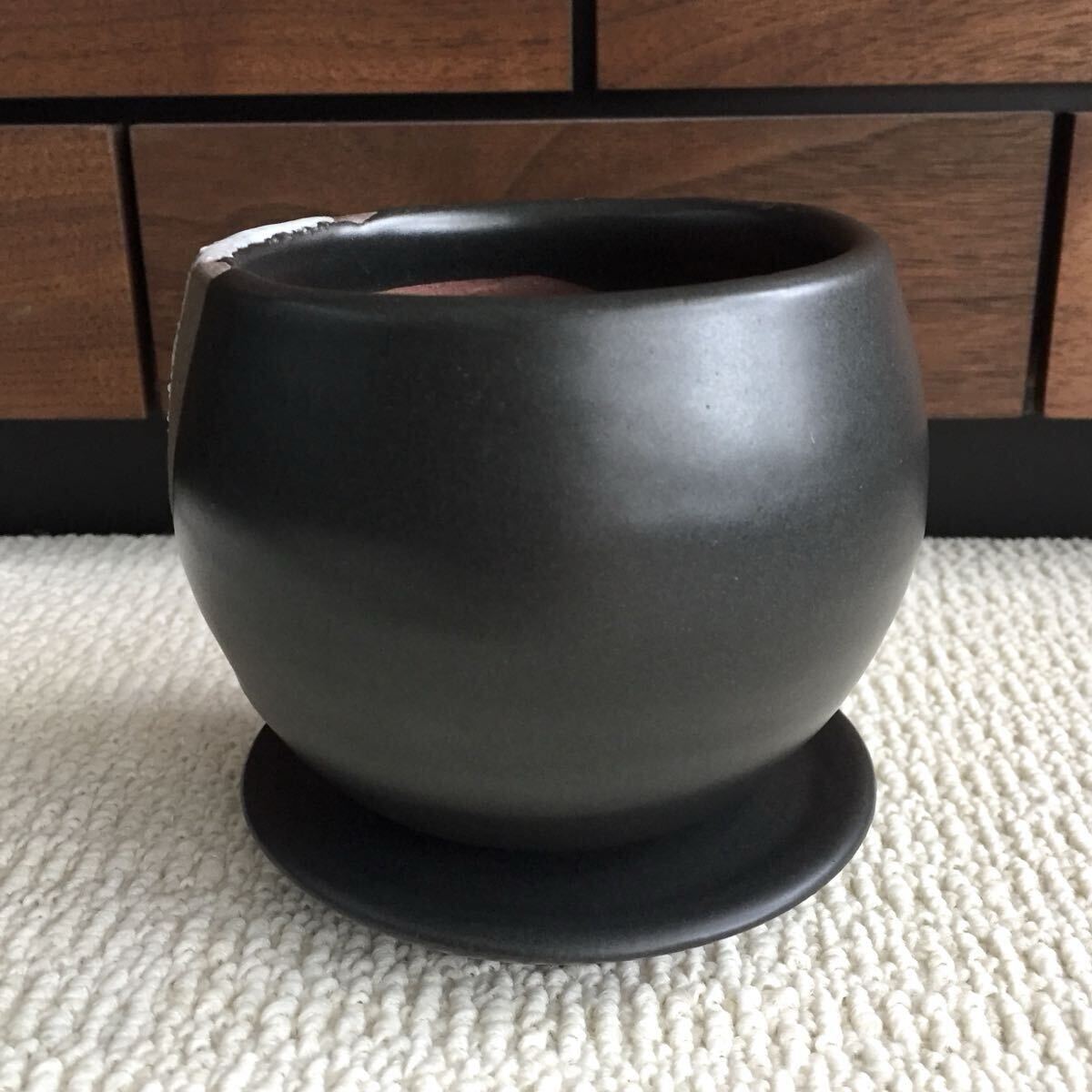 オザキフラワーパークで購入した陶器鉢(受け皿付き)です。