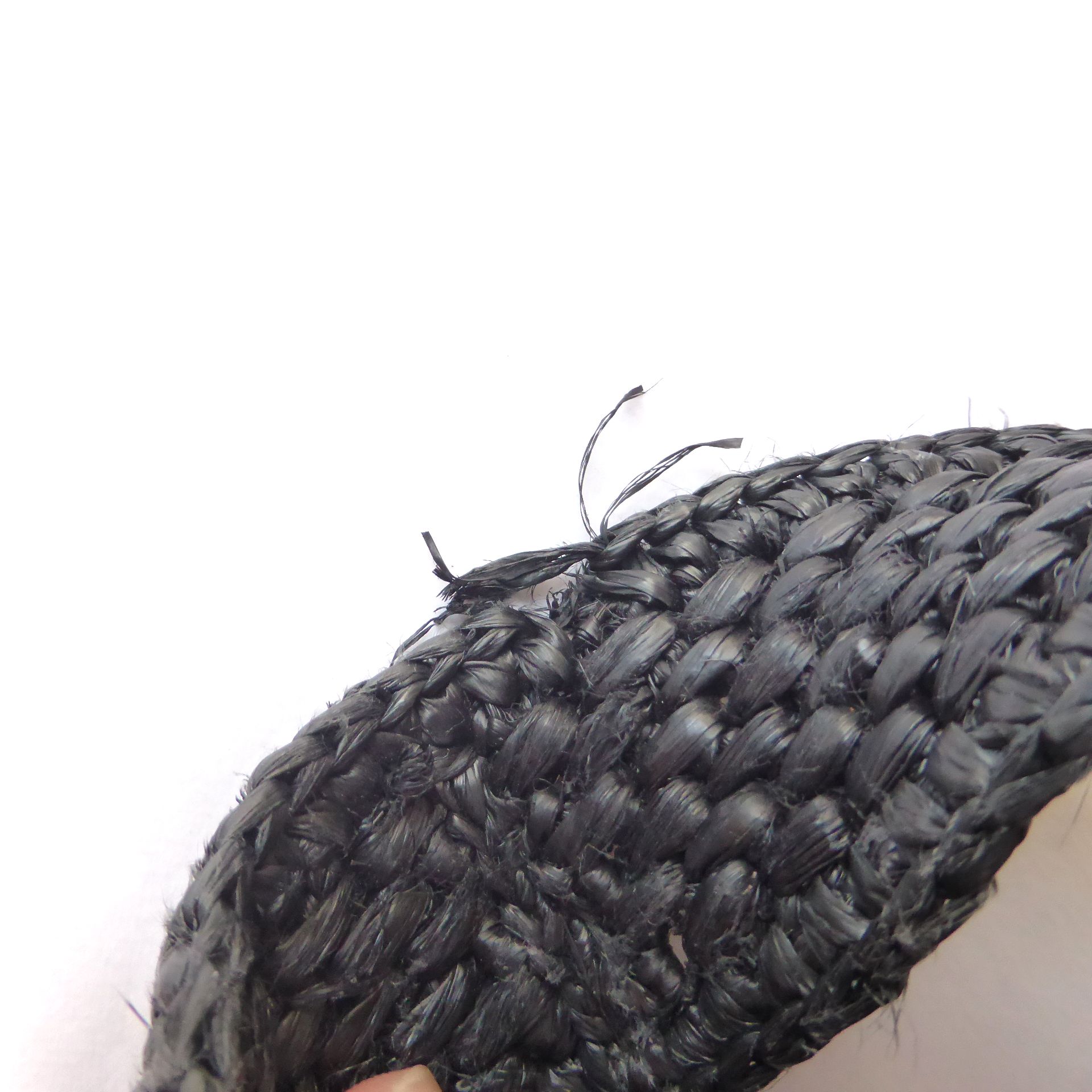 | ハンドル部分に一部ラフィアの切れによるほつれ、全体的に素材の毛羽立ちが見受けられますが、使用感が少ないお品です。なお、天然素材の手作りの為、若干のゆがみや全体的にラフィア素材の飛び出し等はご了承ください。 |