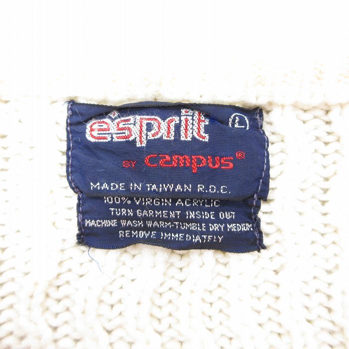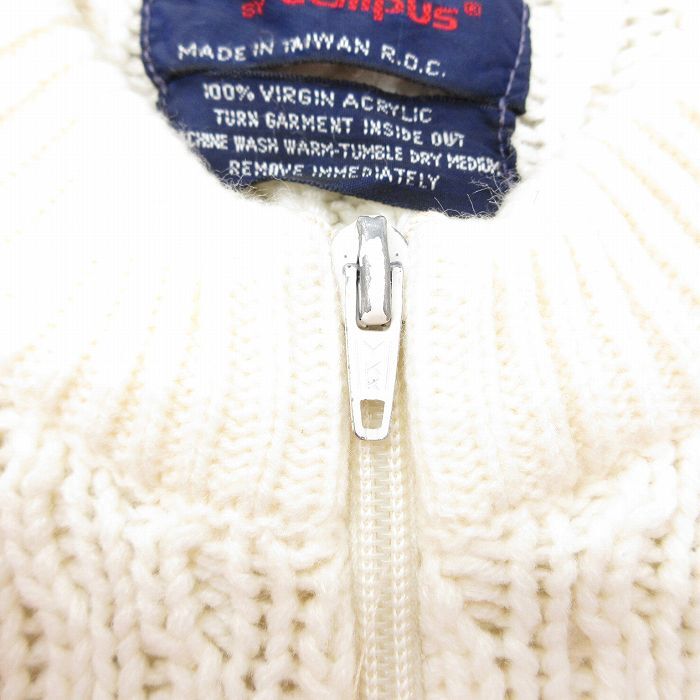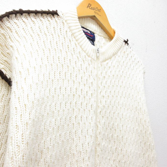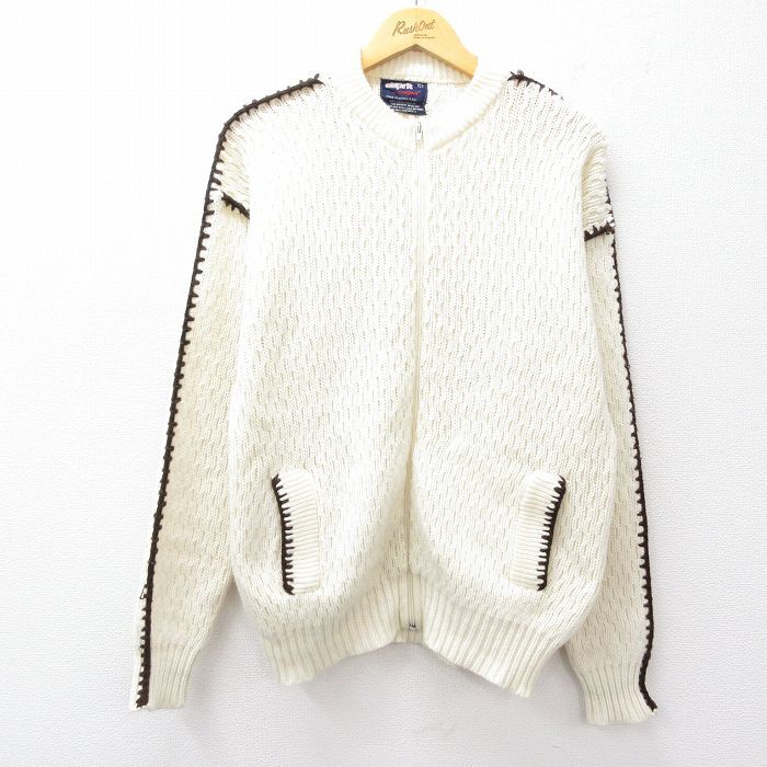 【商品名】 M★古着 キャンパス 長袖 フルジップ ニット カーディガン メンズ 90年代 90s アクリル 白
