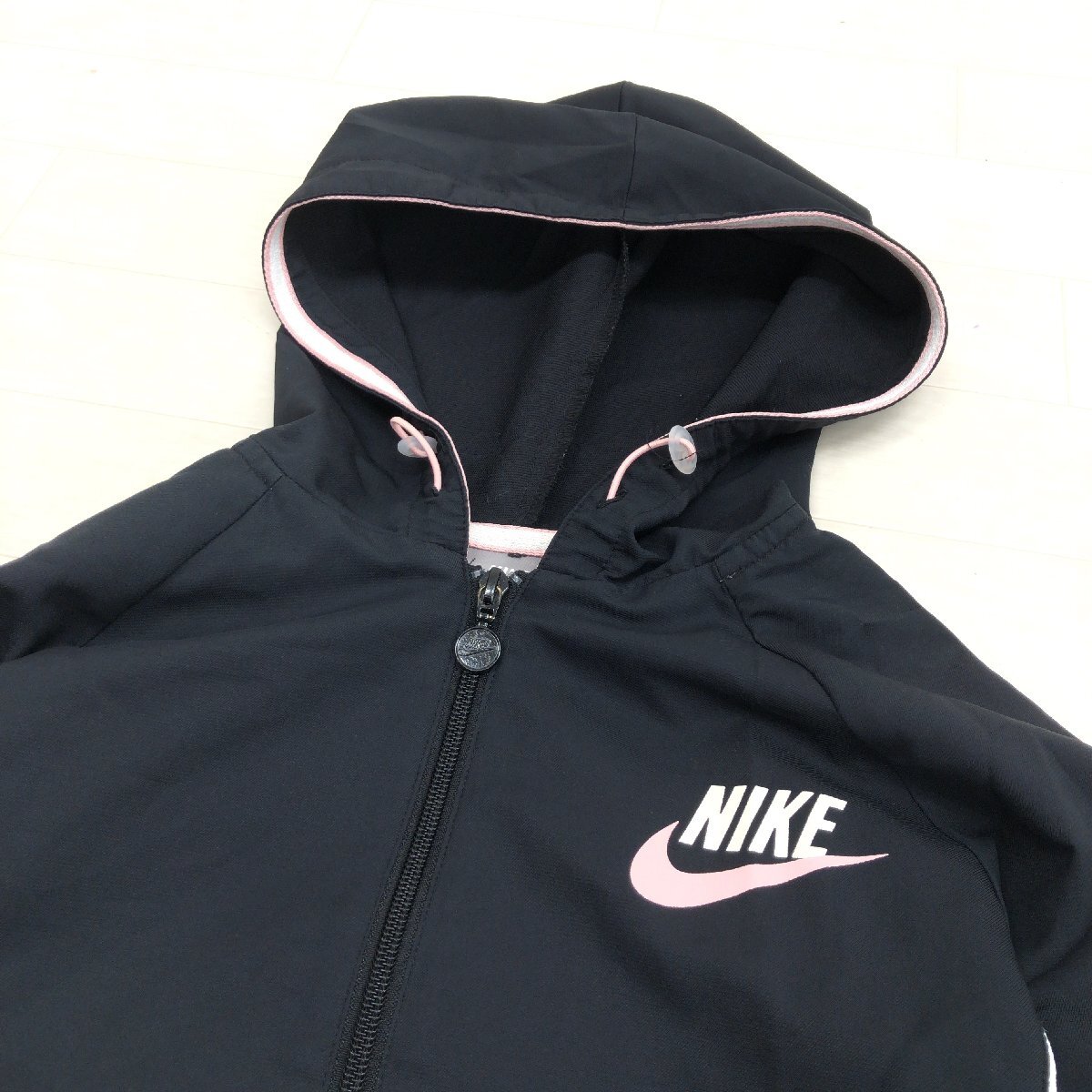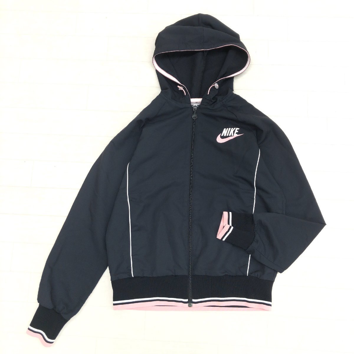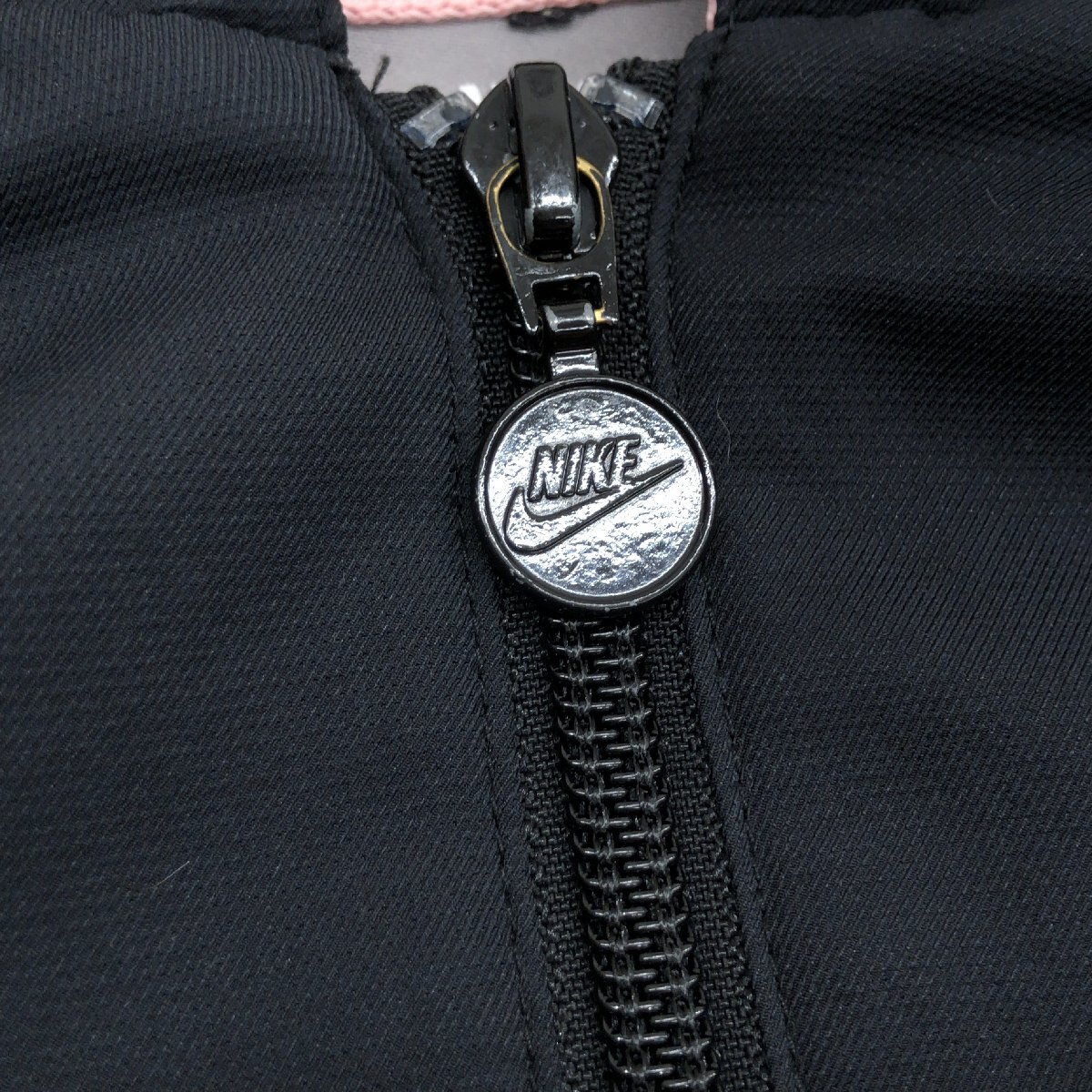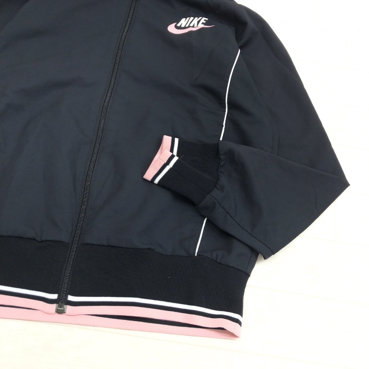 NIKE ナイキ 吸水速乾 ドライ ウーブン ジップアップ パーカー M 黒 ブラック×ピンク ジャージ ジャケット 羽織り レディース スポーツMIX