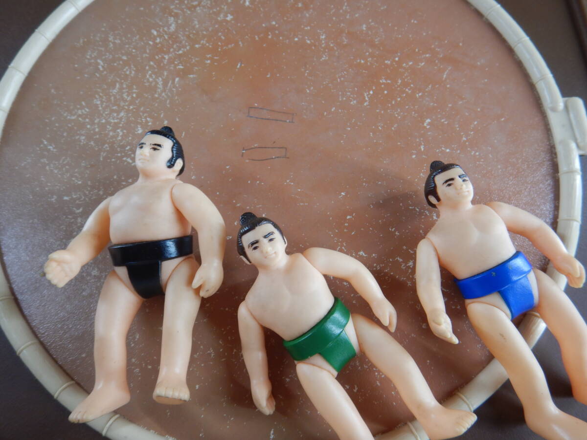 相撲 大相撲 ボードゲーム100901  力士三体 現状品 35X35CM 力士H10CM SUMO JAPAN 昭和レトロ 家族おもちゃ