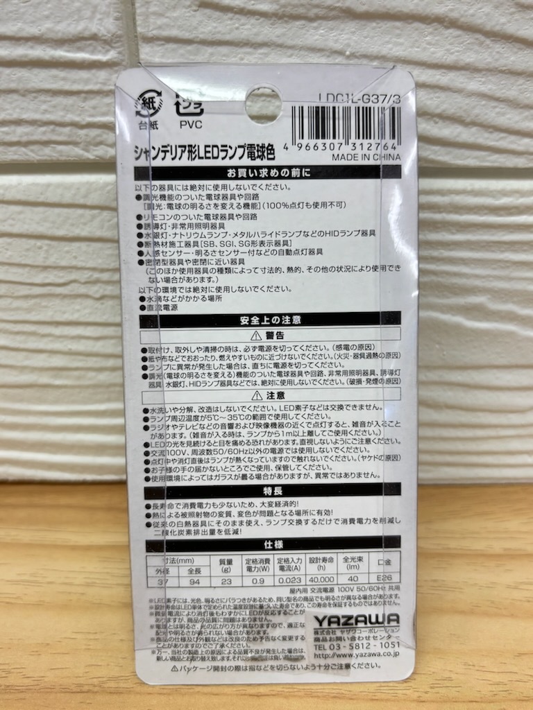 | 商品名 | C37形LEDランプ電球色E26クリア |