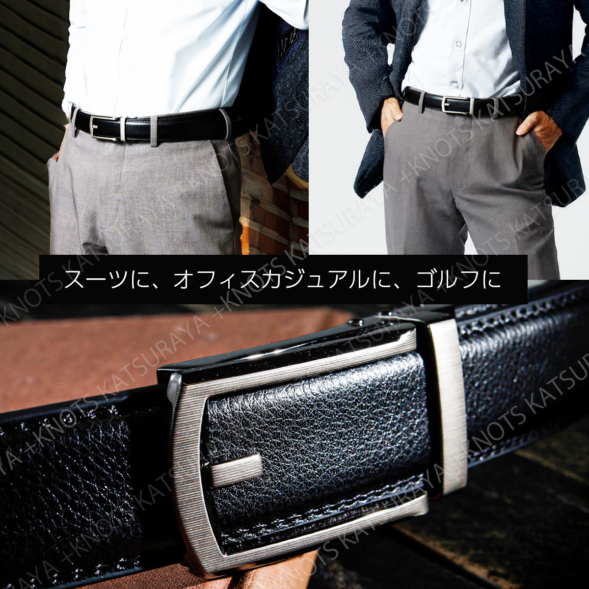 本革 メンズ ベルト★ブラック黒★オートロック 穴無し 自動 レザー ビジネス ゴルフ フォーマル 通勤 スーツ 調節 仕事 紳士a025