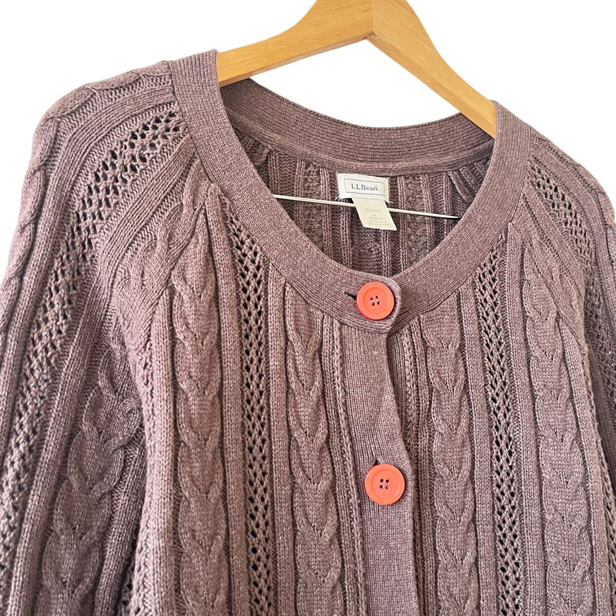 Ye2228cc L.L.Bean(エルエルビーン) カーディガン 長袖 ケーブル ニット サイズM ブラウン 茶色 270975 レディース