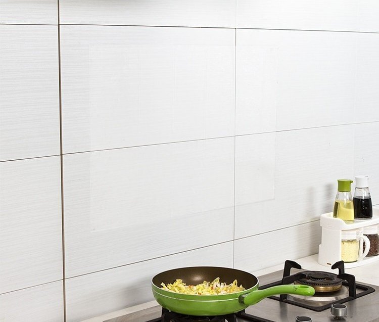 ・キッチンの壁を保護するシートです。簡単に貼れて、キレイにはがせます。