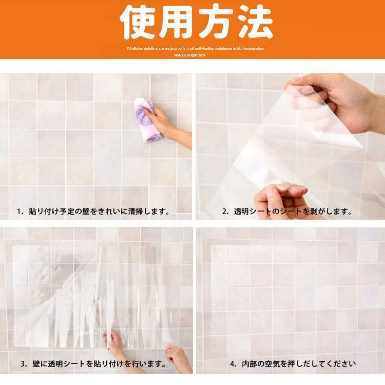 ◆キッチンシート 透明壁紙シート キッチン壁用汚れ防止シート 防水 防油 防汚 耐熱 約45x70㎝ ガラス テーブル 洗面所 トイレなどにも 汚れ落ちやすい透明シート KCS7045