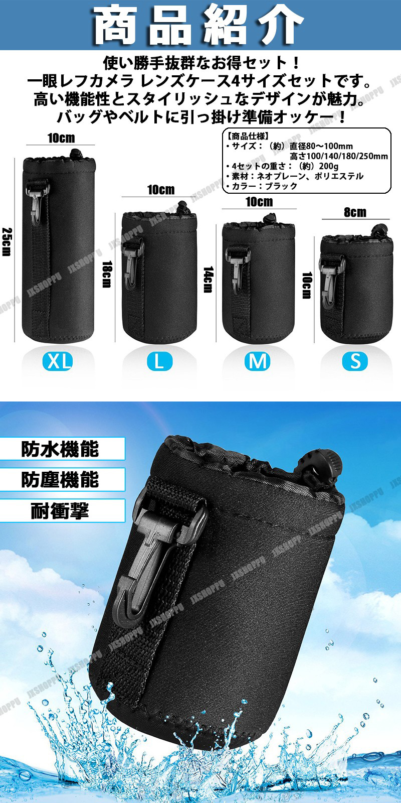 ・使い勝手抜群、お得セット、一眼レフカメラ レンズケース4サイズセットです。