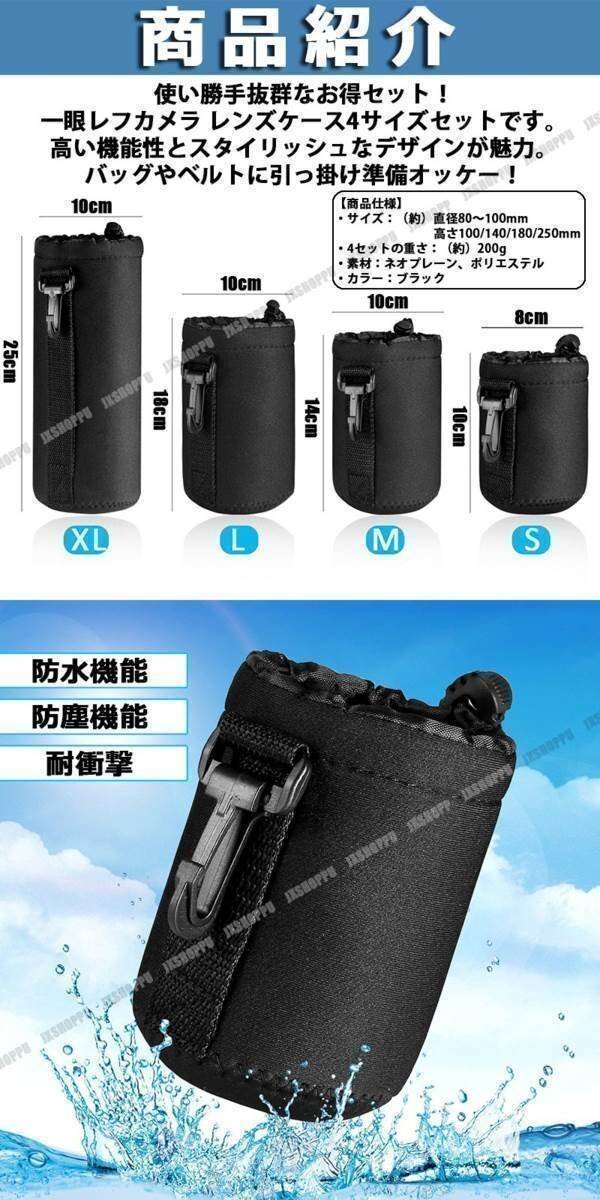 送料0円 一眼レフカメラ ネオプレーン レンズケース 4サイズセット 収納袋 防水 耐衝撃 レンズ袋 ソフトケース 保護 カバー ブラック 黒
