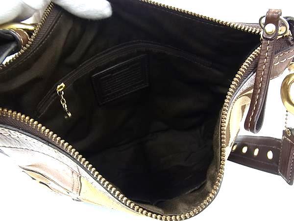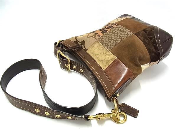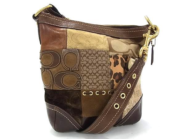 1円 COACH コーチ F12840 レザー×スエード×キャンバス パッチワーク クロスボディ ショルダーバッグ 斜め掛け ブラウン系 GA6130