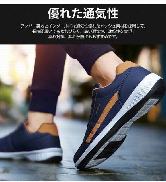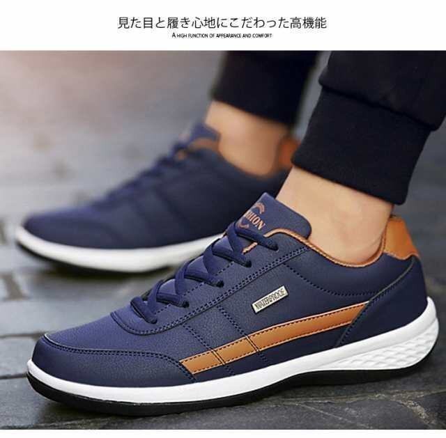 メンズ スニーカー メンズ 防水 メンズ 靴 シューズ ウォーキングシューズ アウトドア 防滑 通気 ネイビー 26cm