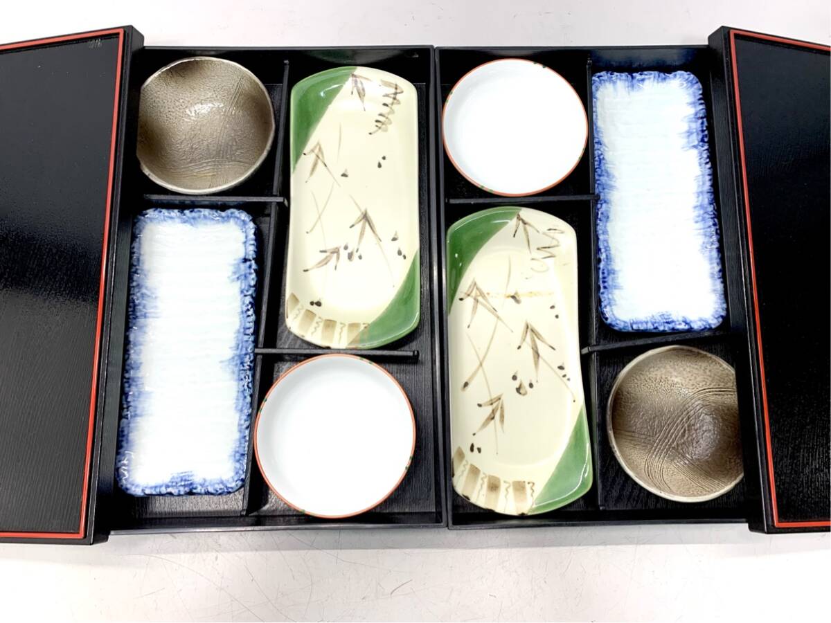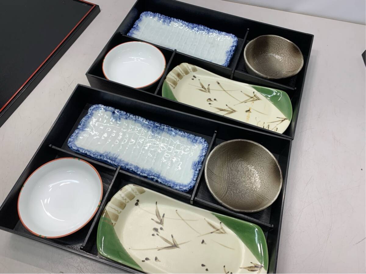 業務用 4つ仕切り箱 2個セット 銘あり皿付き 和食器 御膳 旅館 料亭 ホテル 重箱 プロ仕様 食器 小鉢 A9851B10