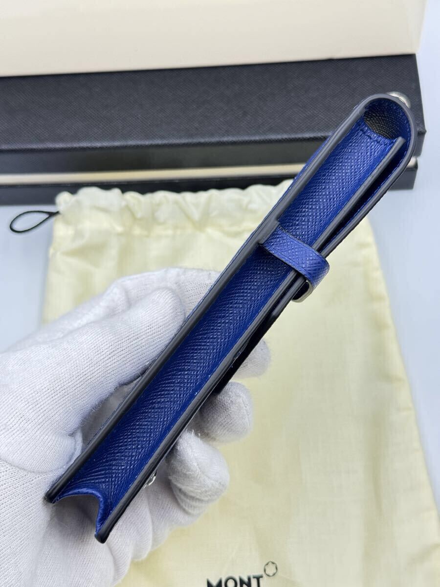 未使用品 モンブラン ペンケース 2本用 サルトリアル レザー ブルー MB131203 メンズ ボールペン 万年筆 筆箱 ペンポーチ シエナ