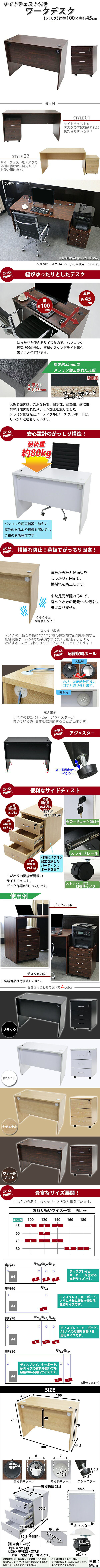 | 商品サイズ | ■本体寸法・・・デスク:約W100×D45×H73.5(cm) サイドチェスト:W約40×D約48.5×H約55.5(cm) ■梱包寸法(2個口)・・・デスク:約W110×D54×H12(cm) サイドチェスト:W約47×D約56×H約52(cm) |