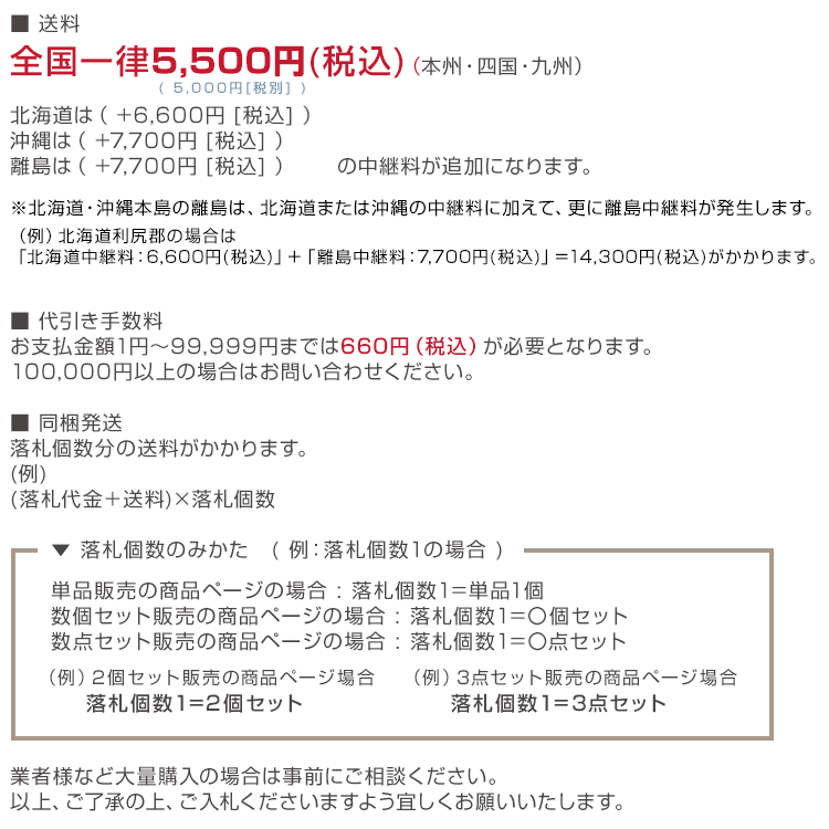 Ⅲ.一旦成功中标,您必须全额支付该拍品(成交价+消费税+银行转账费+日本邮费+代购费)。