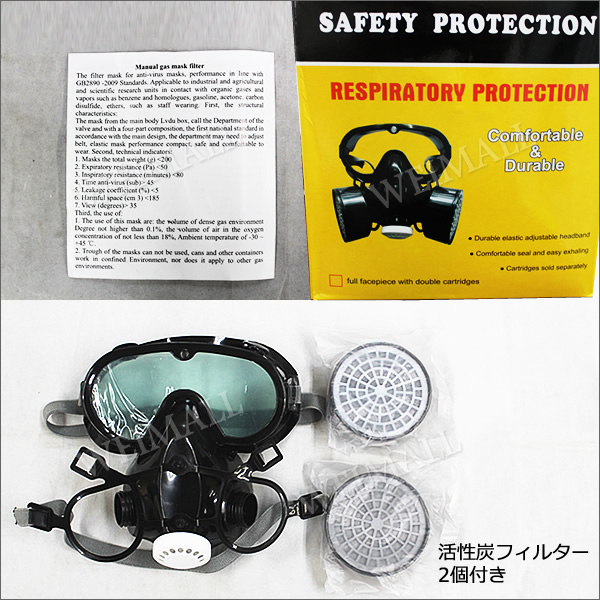 | 防塵マスク 保護メガネ セット 活性炭フィルター2個付き |