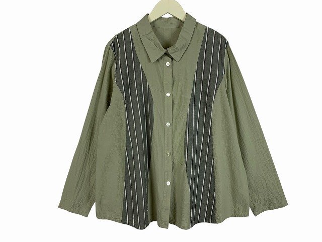 | t.b マツオインターナショナル センソユニコ 長袖シャツ ストライプ レディース サイズ : 40 グリーン | ||||||||||||||||||||||||